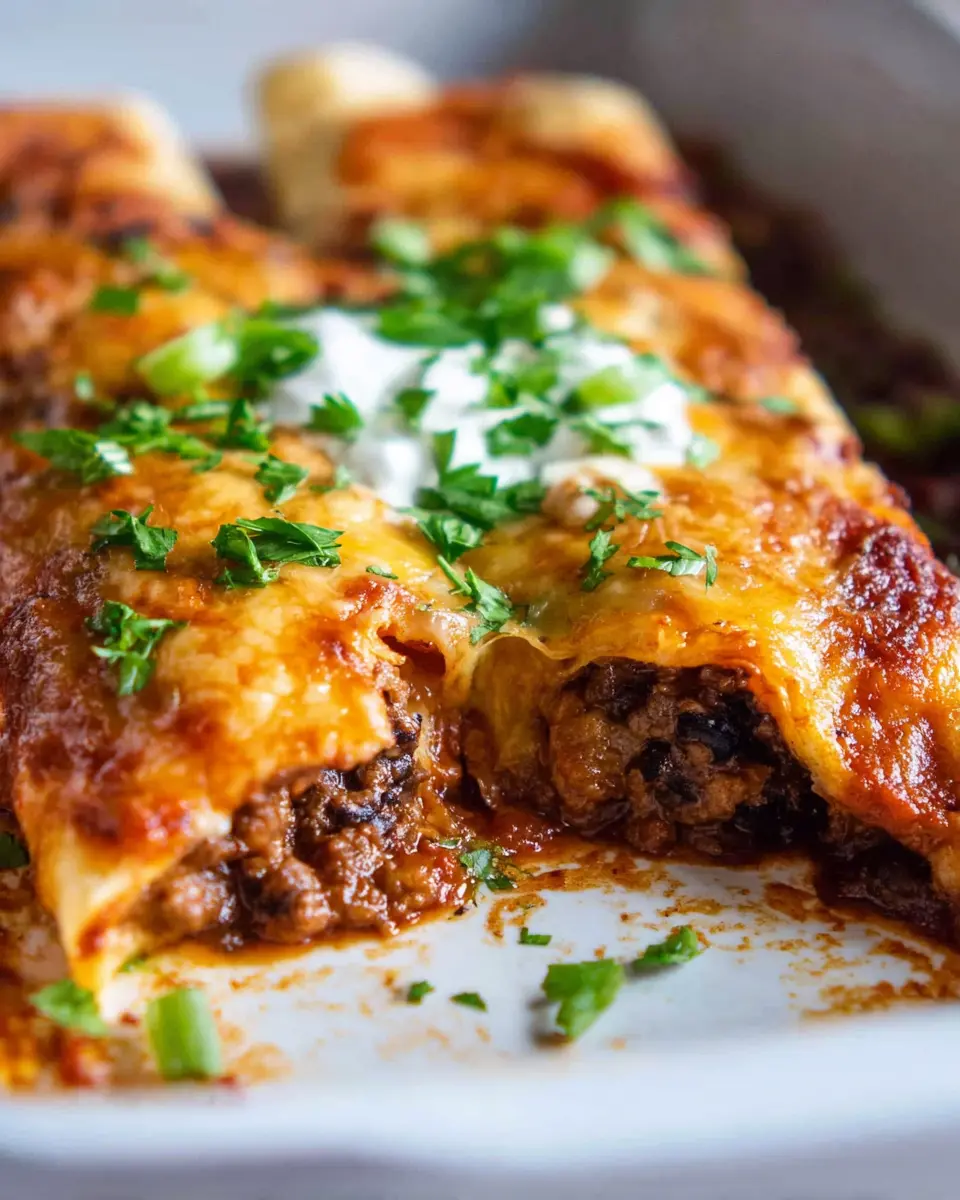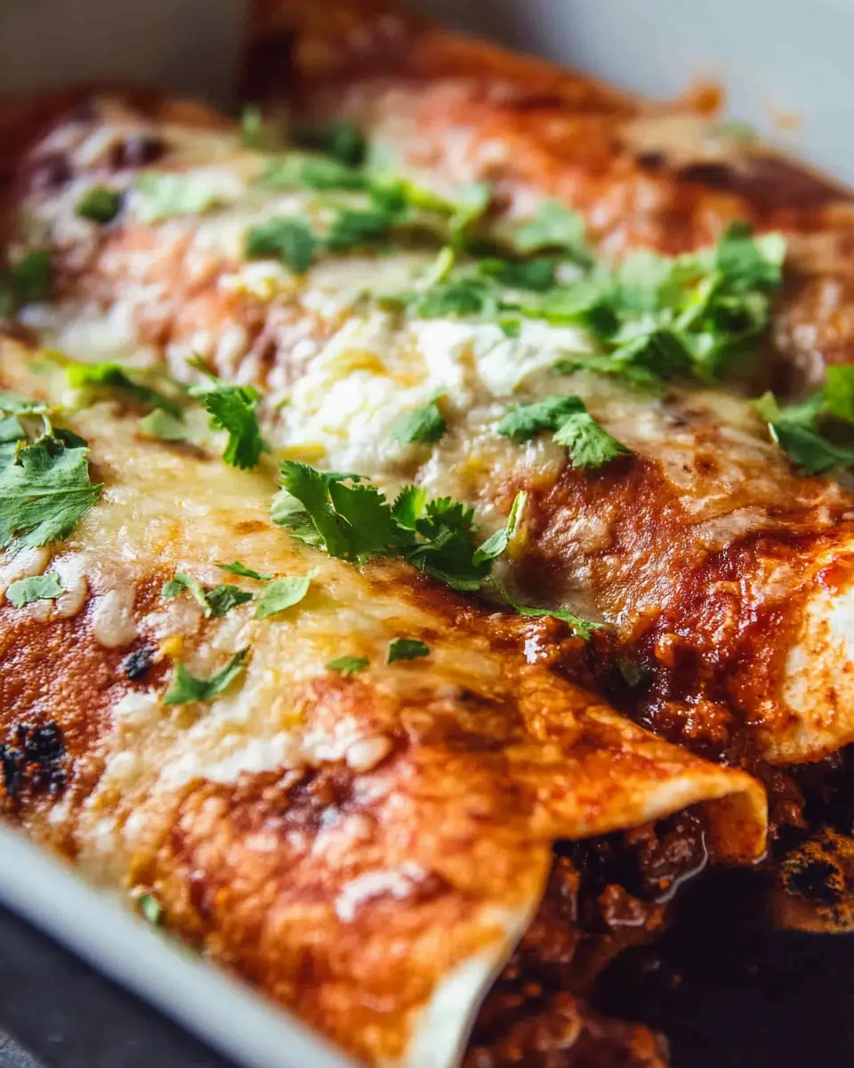 Finishing touches make all the difference! Top your beef enchiladas with a sprinkle of fresh cilantro or sour cream for a pop of color and creaminess. Diced avocado or finely chopped green onions also make for a lovely garnish. If you’re feeling adventurous, try adding some jalapeños for a spicy kick, or drizzle on a tangy chipotle crema to elevate the flavor profile even further.