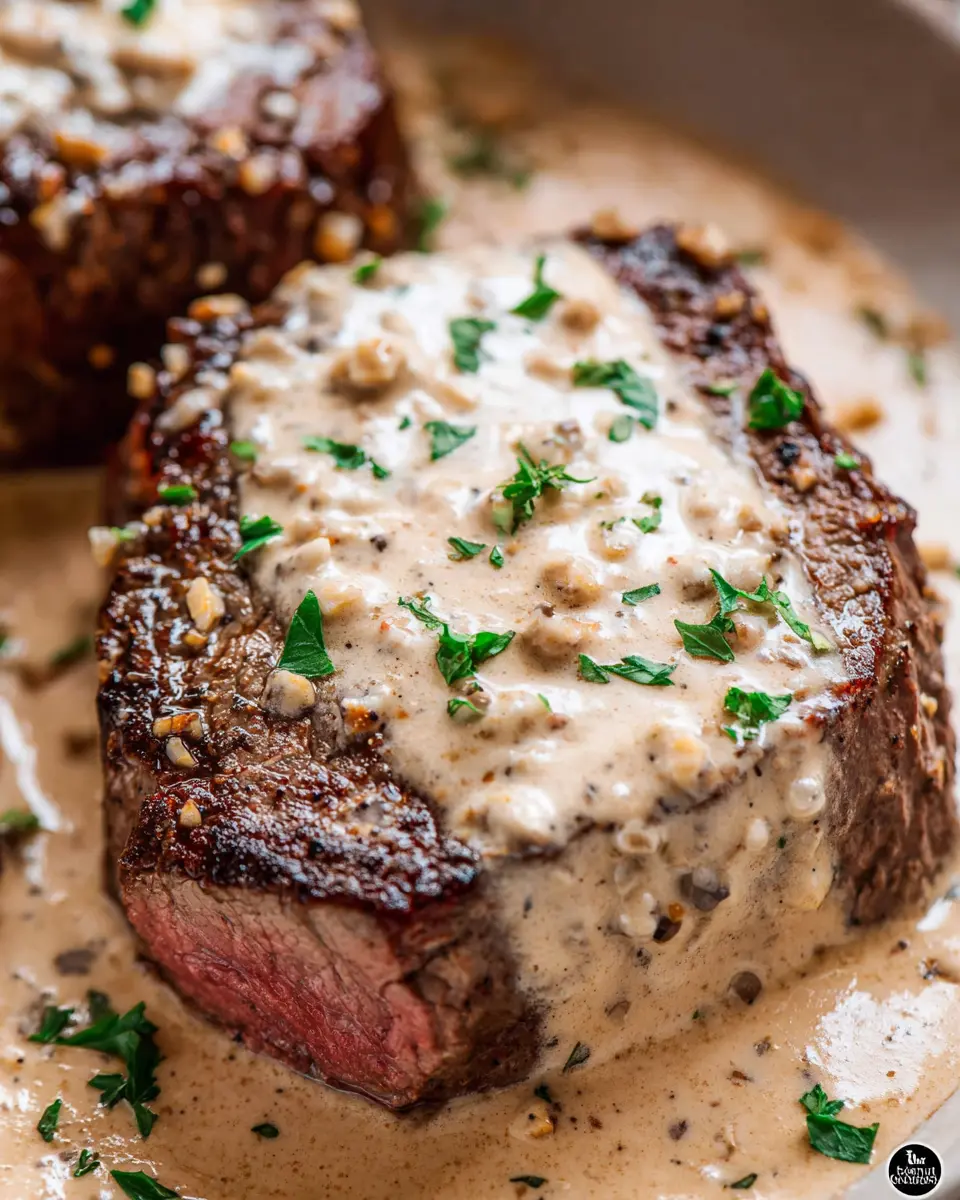- Layered Presentation: Stack a portion of garlic mashed potatoes on one side, topped with asparagus, and place the steak slightly off-center, drizzled with the pepper cream sauce.
