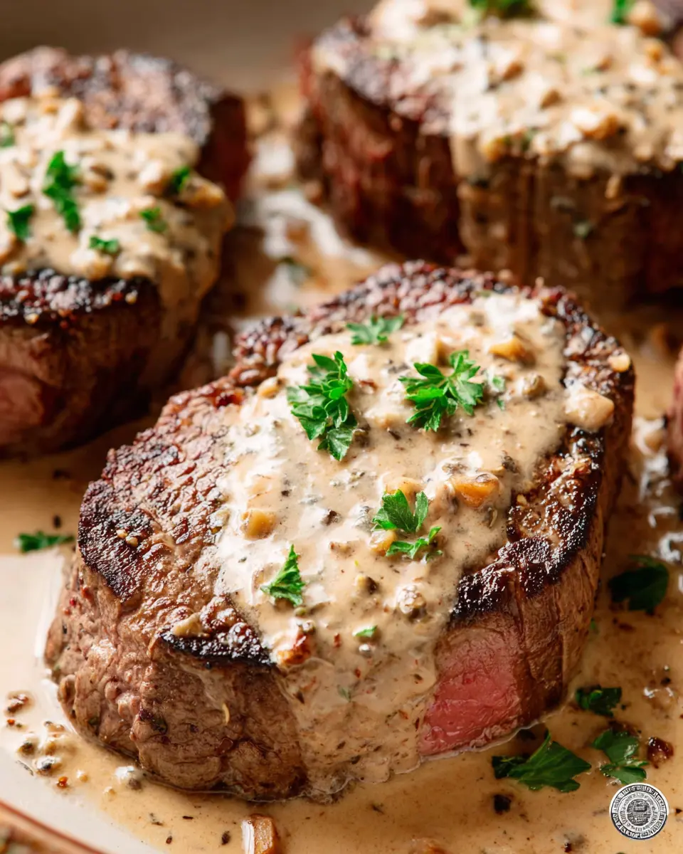 For that decadent, pepper cream sauce, make sure to properly sauté the shallots until softened; this builds a great flavor base. To enhance richness, consider using a low-sodium beef broth and a splash of lemon for brightness. Don’t rush the simmer—allow it to thicken slowly for maximum creaminess.