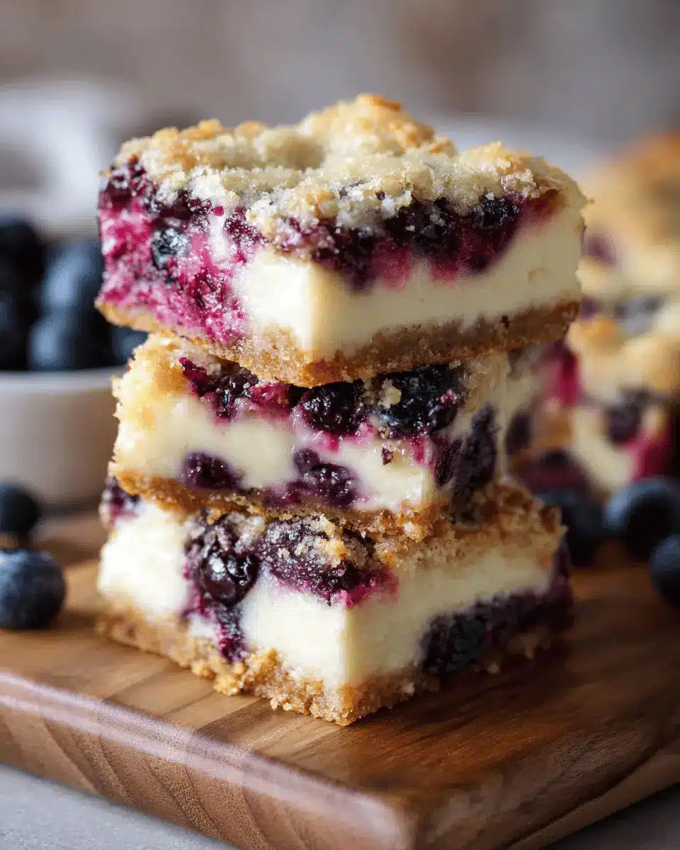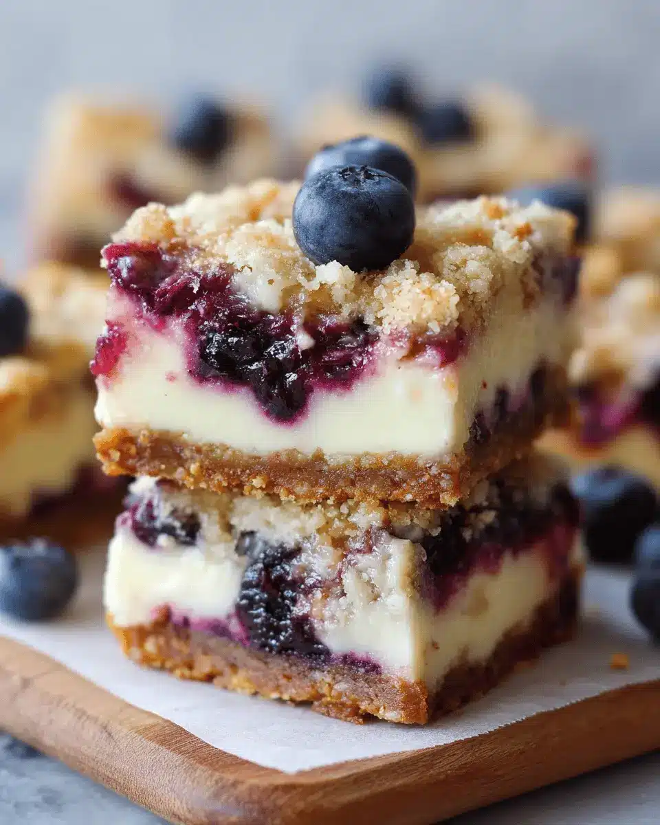 Elevate your blueberry cream cheese bars even further with a variety of toppings. A light dusting of powdered sugar adds a touch of elegance, while a dollop of whipped cream enhances each bite. Consider adding a drizzle of honey or maple syrup for added sweetness. You can also sprinkle some crushed nuts on top for a delightful crunch. For more serving inspiration, check out Epicurious or Bon Appétit for creative ideas!