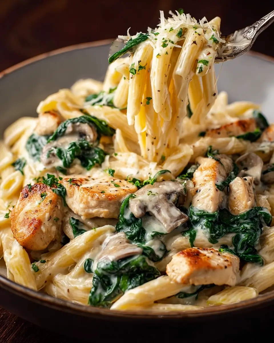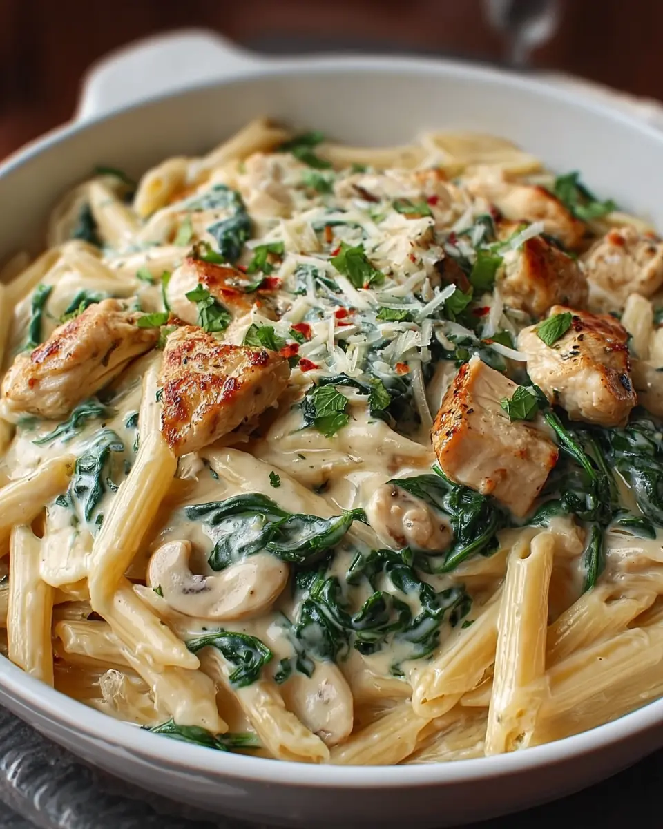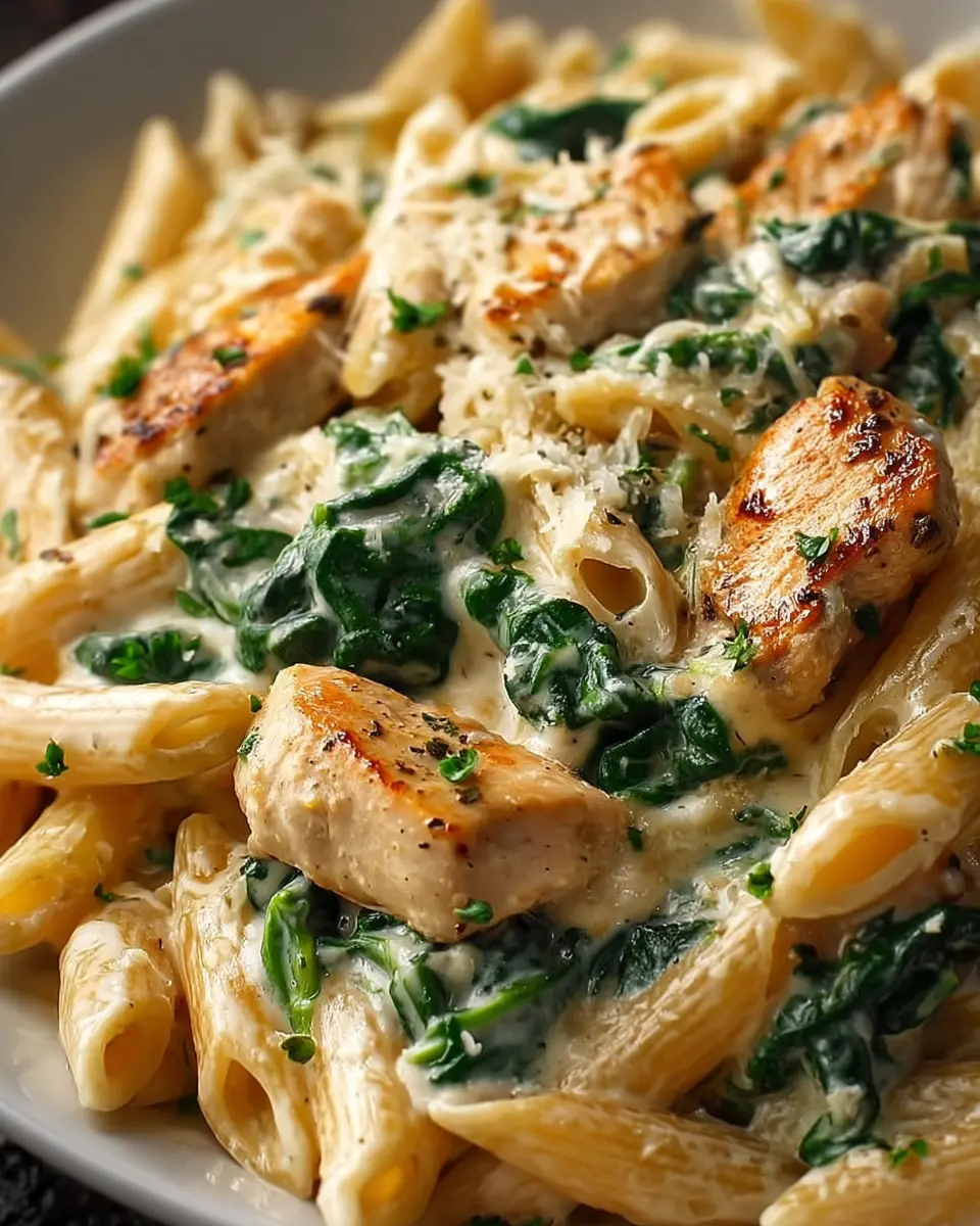 In summary, Chicken Alfredo Spinach Pasta is a creamy, comforting dish that combines tender chicken, vibrant spinach, and rich Alfredo sauce for a crowd-pleaser. It’s perfect for weeknight dinners or hosting, offering a gourmet feel without too much hassle. Give it a try — your taste buds will thank you!