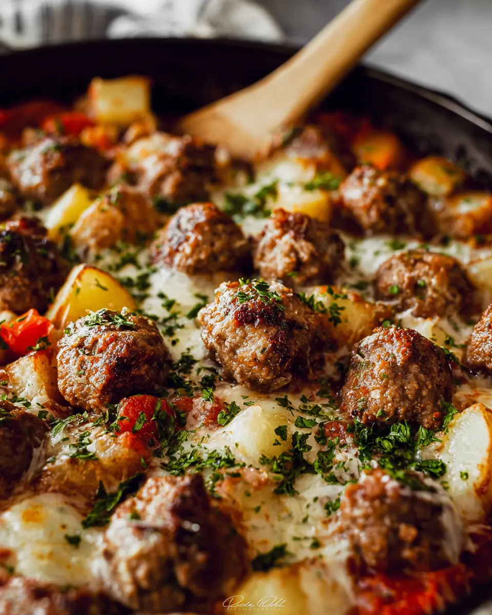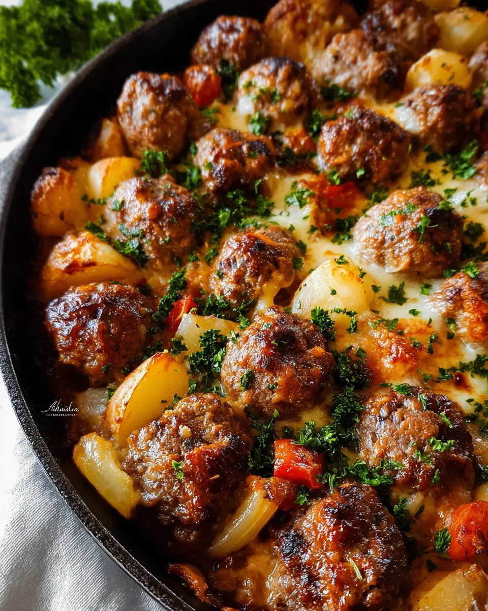 Transform your classic meatball casserole into a heartwarming family feast. Set the table with cozy candles, play some soft music, and invite everyone to gather around for a comforting meal. This dish is perfect for sharing, making it an ideal centerpiece for family gatherings or weeknight dinners—bringing everyone together while enjoying a delicious homemade dish.