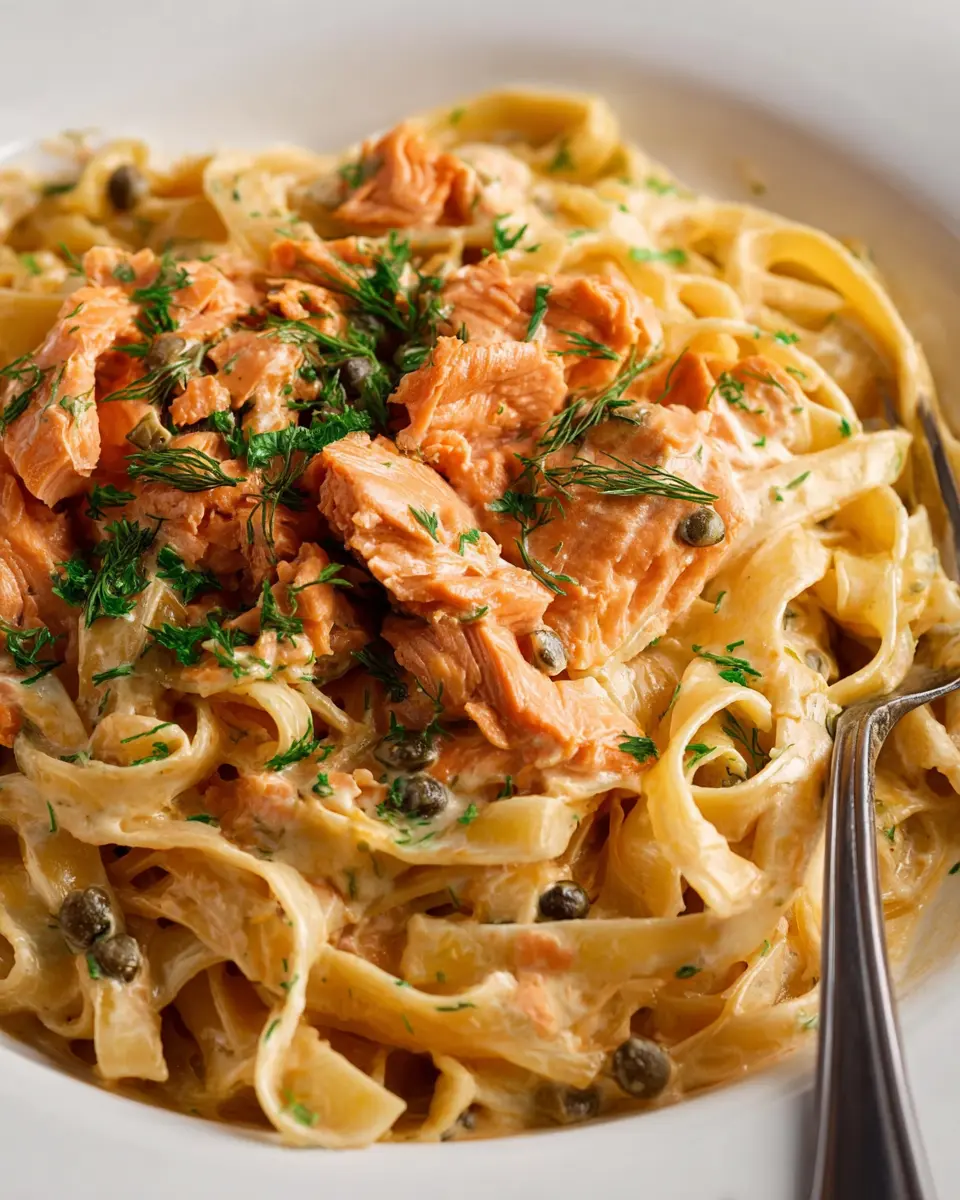To make this creamy salmon pasta recipe more appealing to picky eaters, consider using milder flavors. Reduce the amount of lemon juice and capers, or swap out the salmon for shredded Turkey Bacon or a protein they love, like grilled chicken. Pulsing the sauce ingredients in a blender can create a smooth, creamy base that kids might find easier to enjoy. You might even get them in on the action by letting them help mix the pasta and sauce!