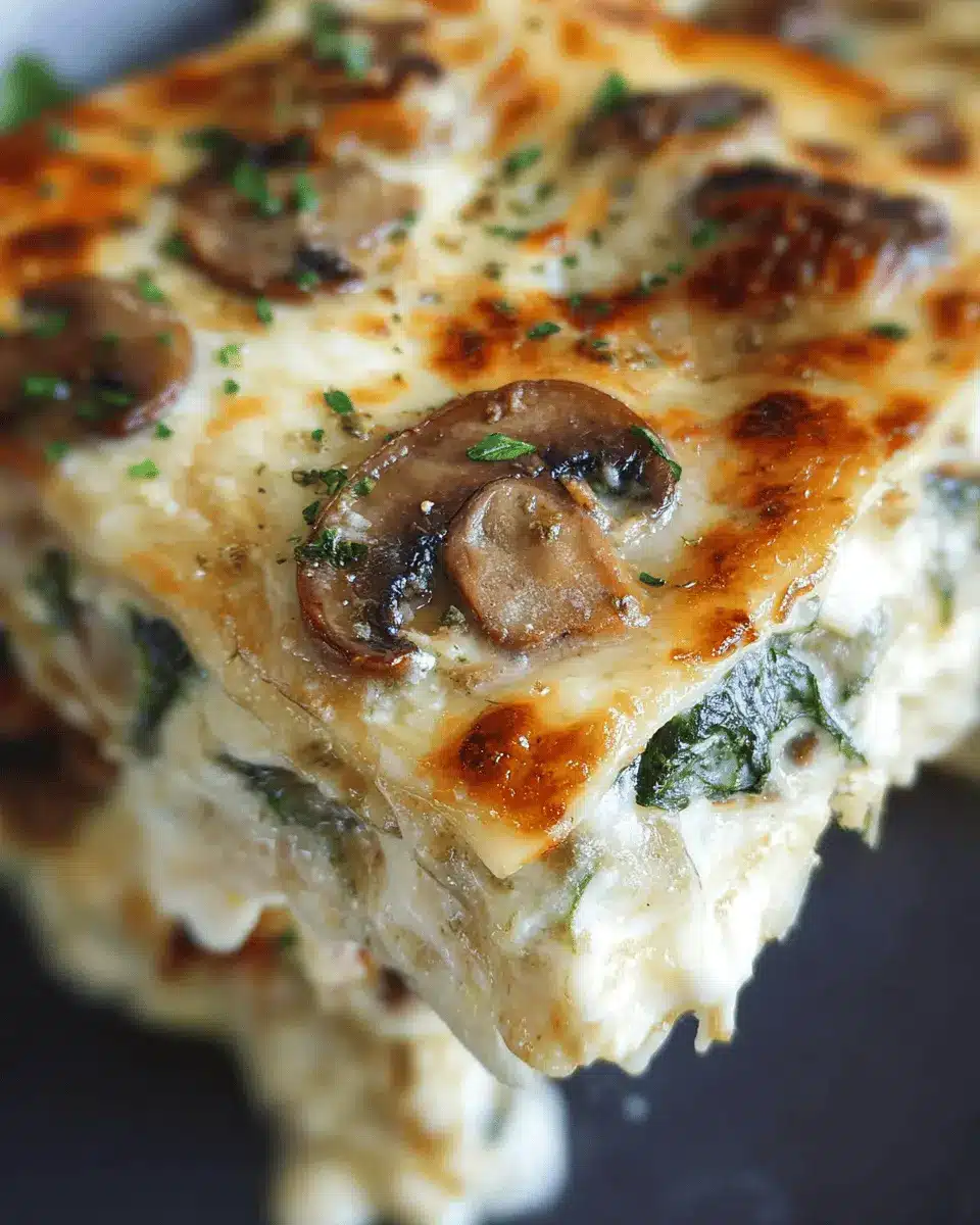 There you have it—your creamy spinach and mushroom lasagne is ready to impress! Enjoy this fantastic dish that’s perfect for gatherings, or simply a cozy night in. Happy cooking!