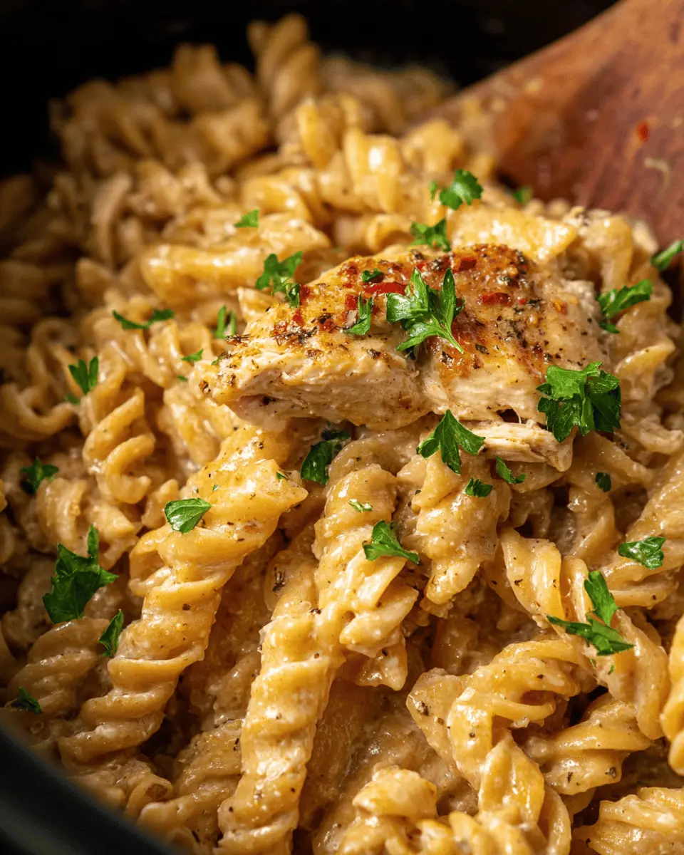 Finishing touches can elevate your dish from good to great. To serve, sprinkle some chopped fresh parsley on top for color and flavor. This not only enhances the dish visually but also adds a fresh note. Enjoy your Crock Pot Garlic Parmesan Chicken Pasta with a side salad or some crusty bread for a complete meal that’s sure to impress!