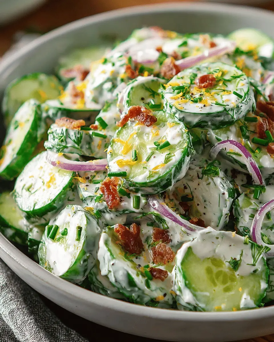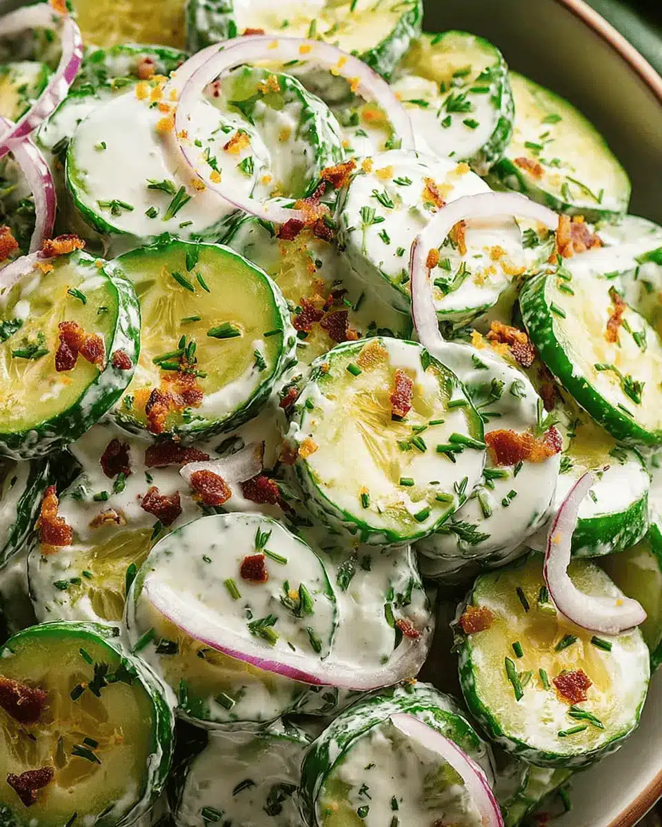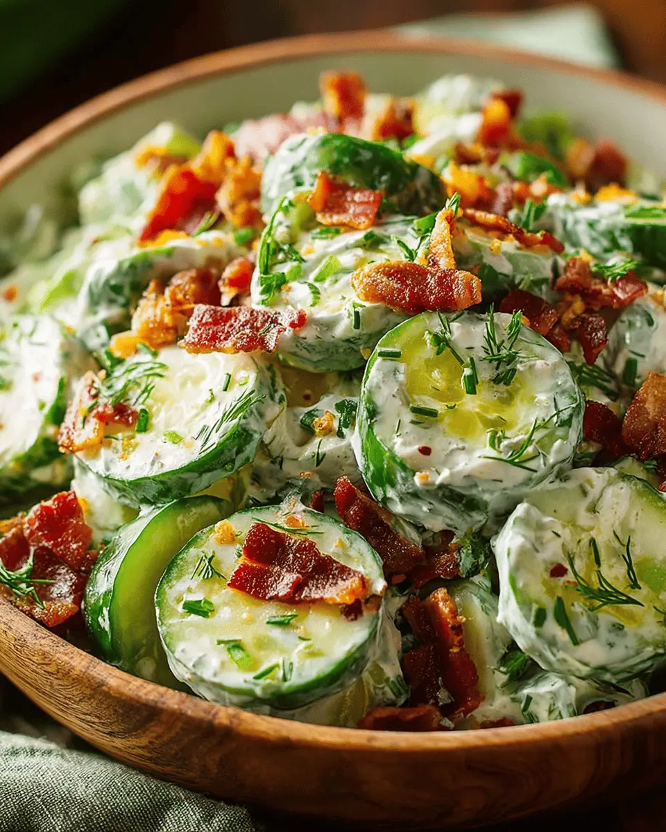 - Turkey Bacon: Using ⅓ cup of crispy turkey bacon crumbled adds a savory element that complements the freshness of the cucumbers beautifully.