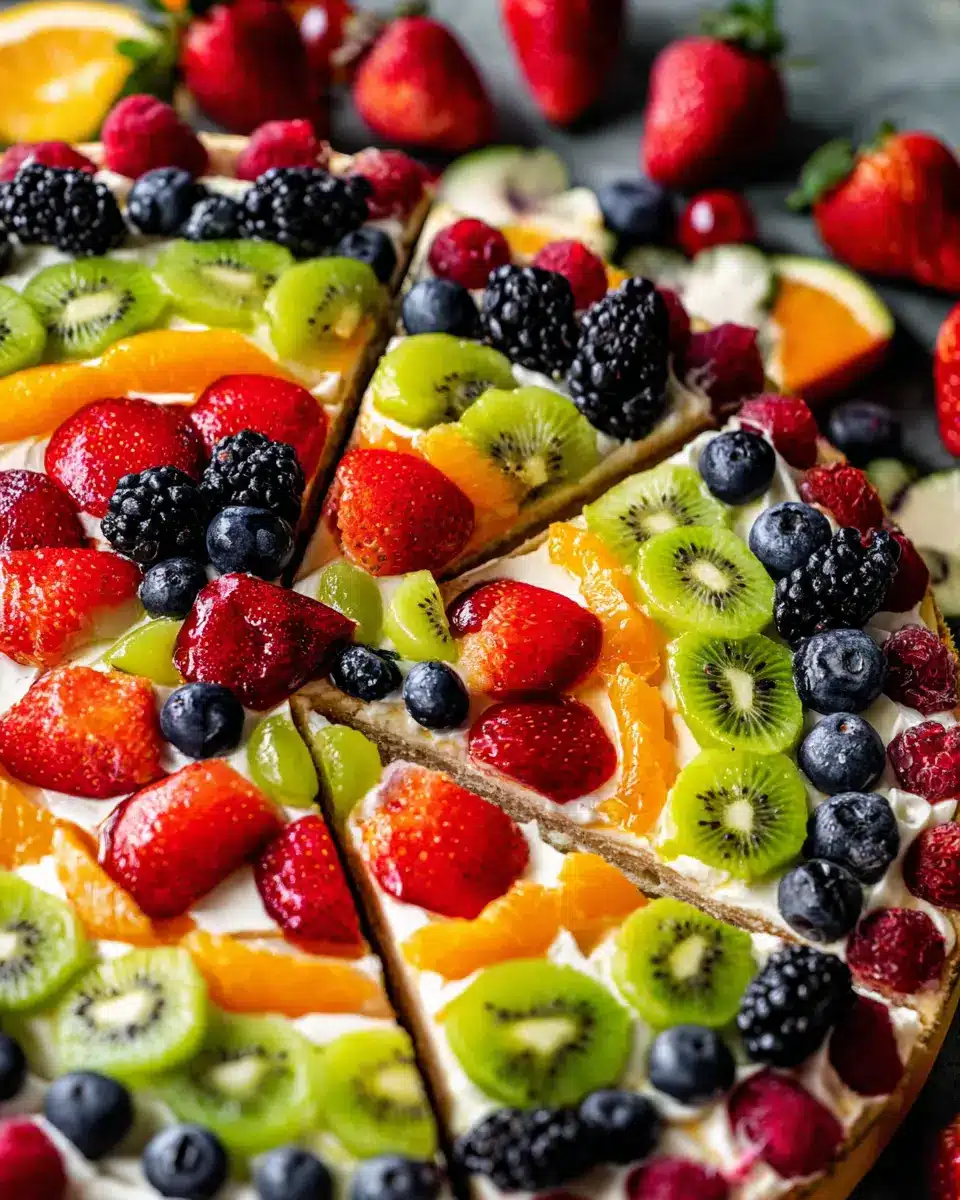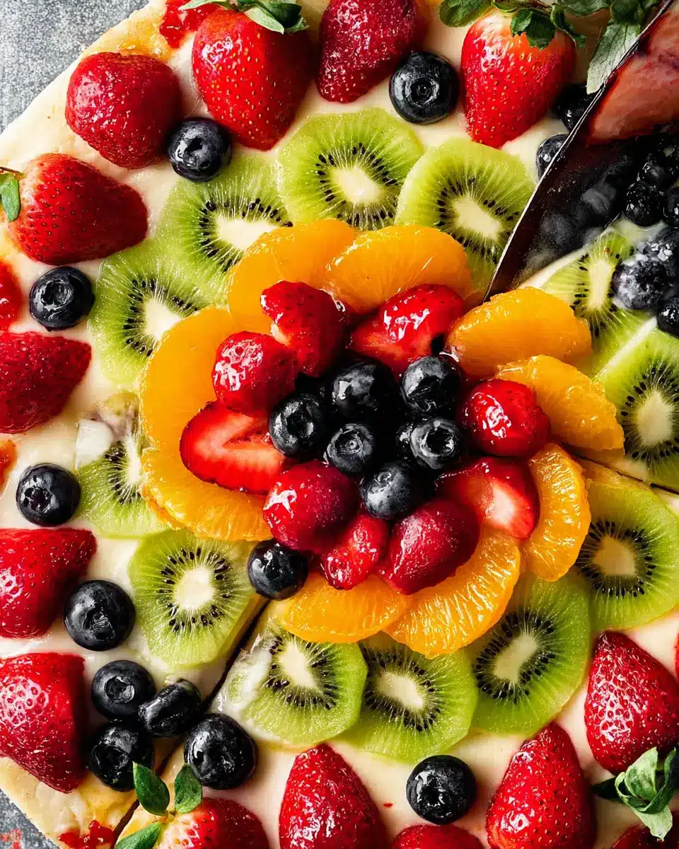 This colorful dessert shines best at gatherings! Imagine a vibrant picnic in the park, or a festive birthday party where guests can indulge in a slice. For a more intimate setting, a casual backyard soirée can perfectly complement the sweetness of your fruit pizza. Remember to keep it chilled until serving, ensuring that the fruit stays fresh and appealing!