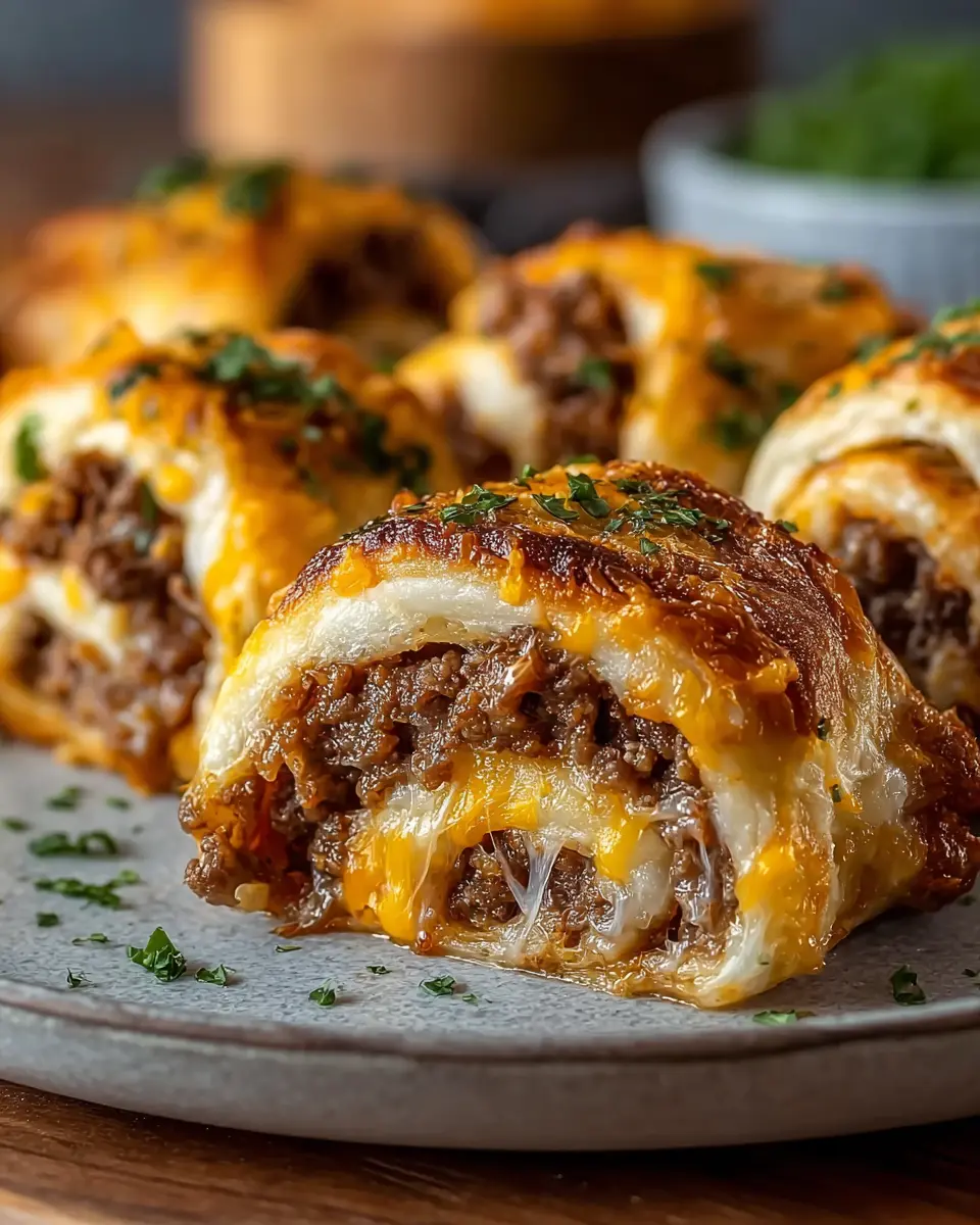 In just 30 minutes, these Garlic Butter Cheeseburger Rollups become a delightful family favorite. Their combination of savory ground beef and melted cheese wrapped in golden dough makes them perfect for any occasion. Don't hesitate to customize them with your favorite add-ins for even more flavor! Enjoy!