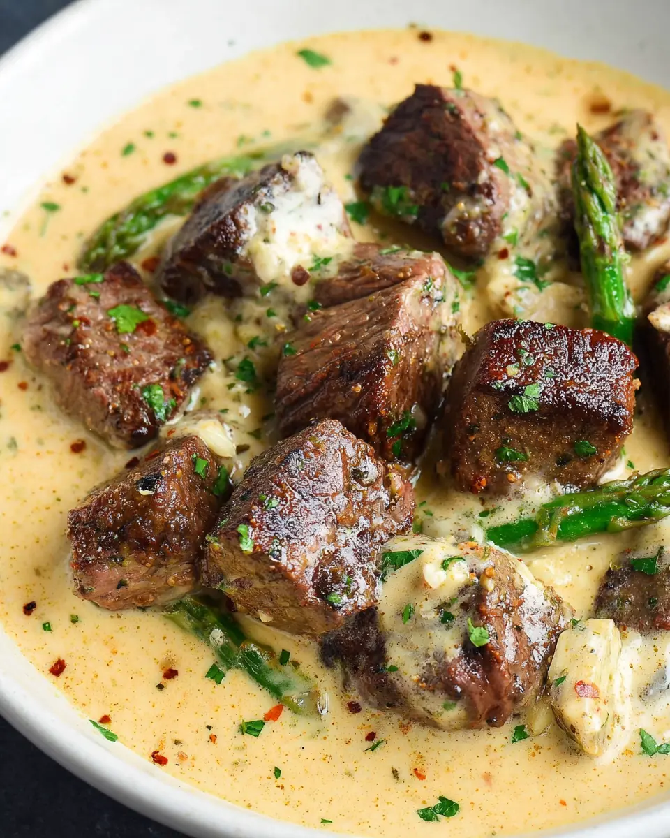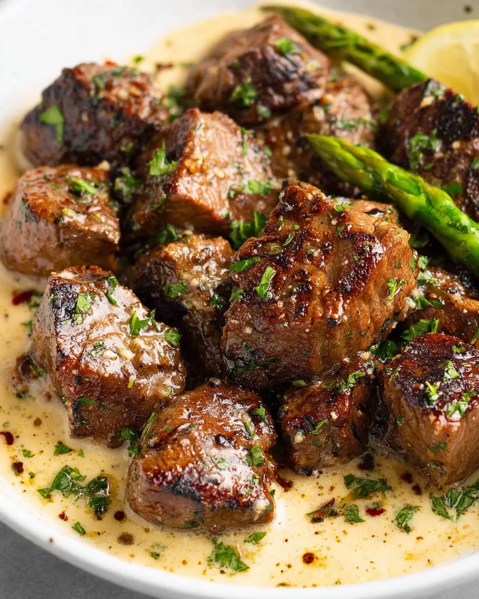 Garlic Butter Steak Bites with Parmesan Cream Sauce