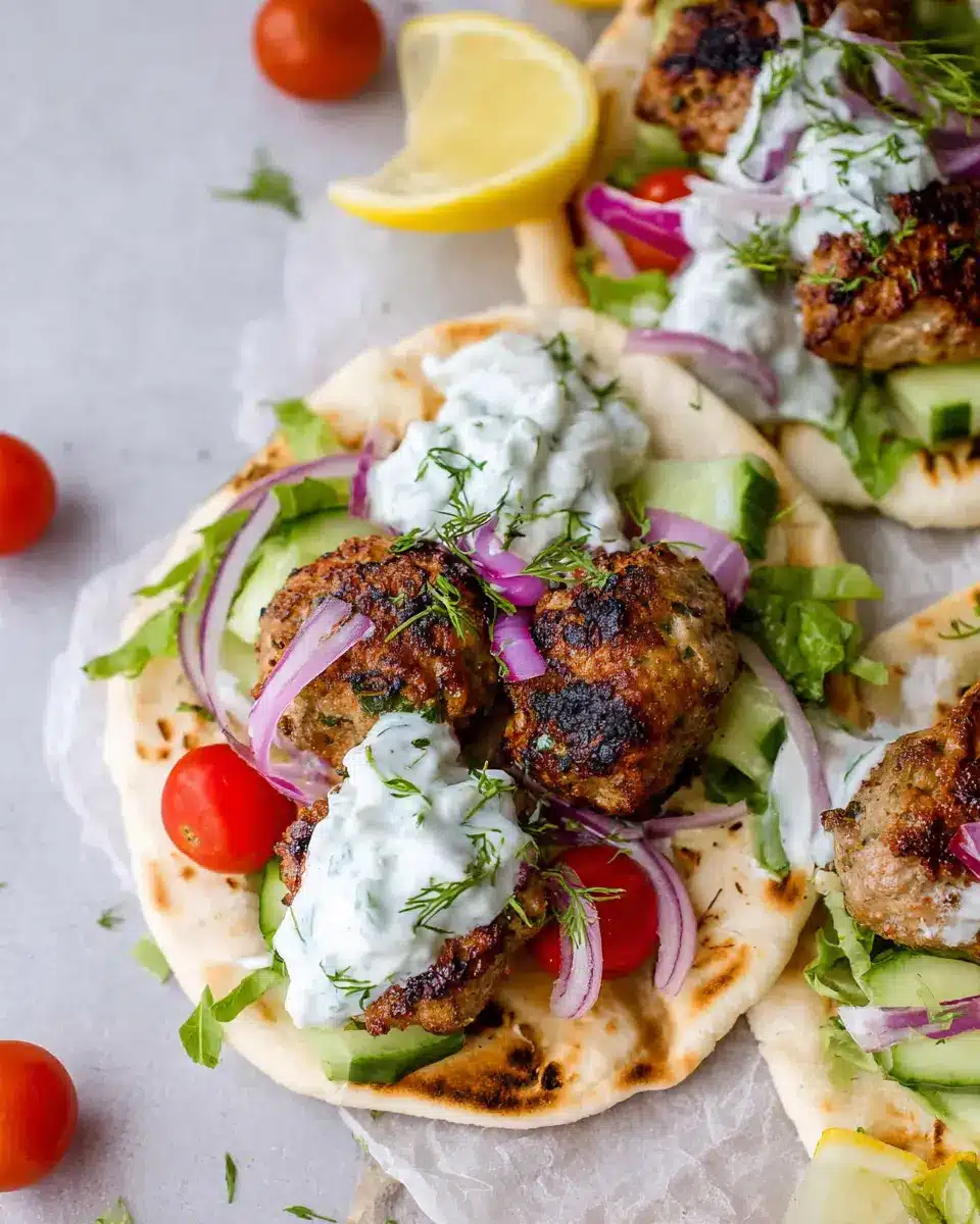 Greek Turkey Meatball Gyro with Tzatziki