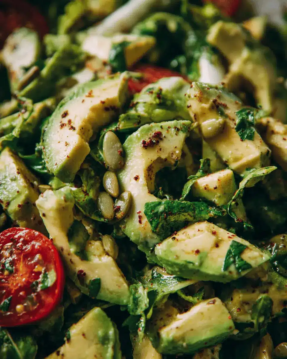 With around 13 grams of fiber per serving, this salad supports digestion and helps you feel full longer, making it a fantastic choice for a healthy lifestyle. Rich in fiber, it adds to the overall health benefits of this green avocado salad.