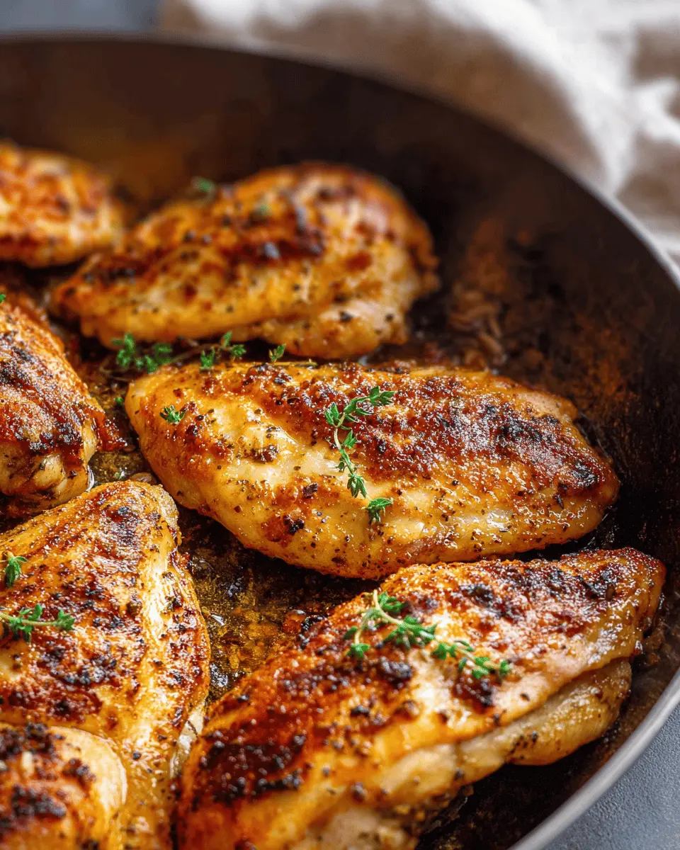 To get that beautiful golden brown crust on your chicken breasts, first, ensure your skillet is nicely heated before adding the oil. This step is crucial; a hot pan allows the chicken to sear properly, locking in those flavorful juices. If you want an even deeper crust, try cooking on medium-high heat for the first side, then reduce to medium after flipping. Also, be careful with spices like paprika and herbs—they can char if cooked too quickly. For a perfectly seared surface, press down on the chicken when it first hits the pan for optimal contact.