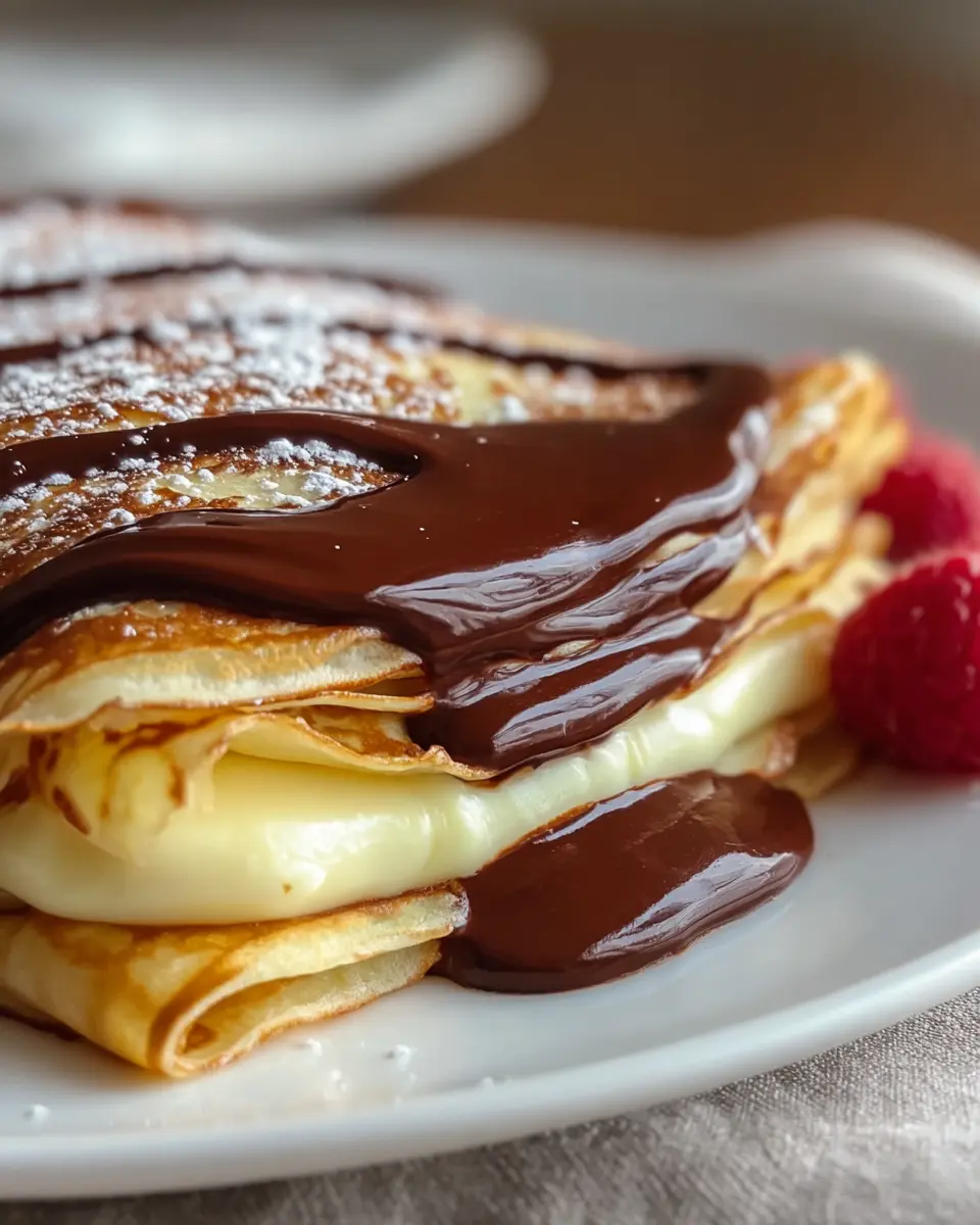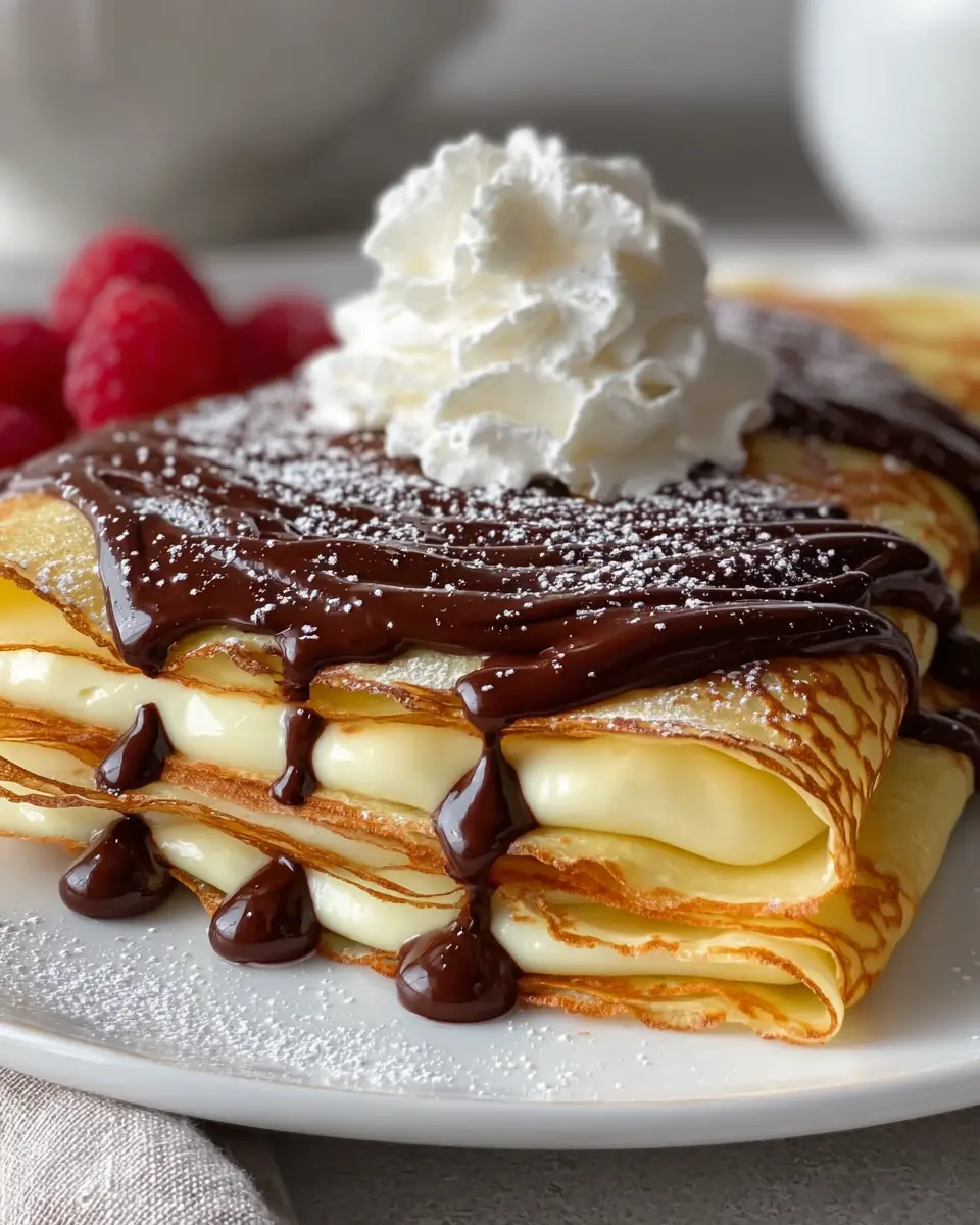 These crepes are not only a feast for the eyes but also a crowd-pleaser that can elevate any brunch or dessert table. Imagine serving warm, fresh crepes filled with smooth vanilla pudding, topped with decadent chocolate ganache—it’s decadent yet surprisingly easy to prepare!