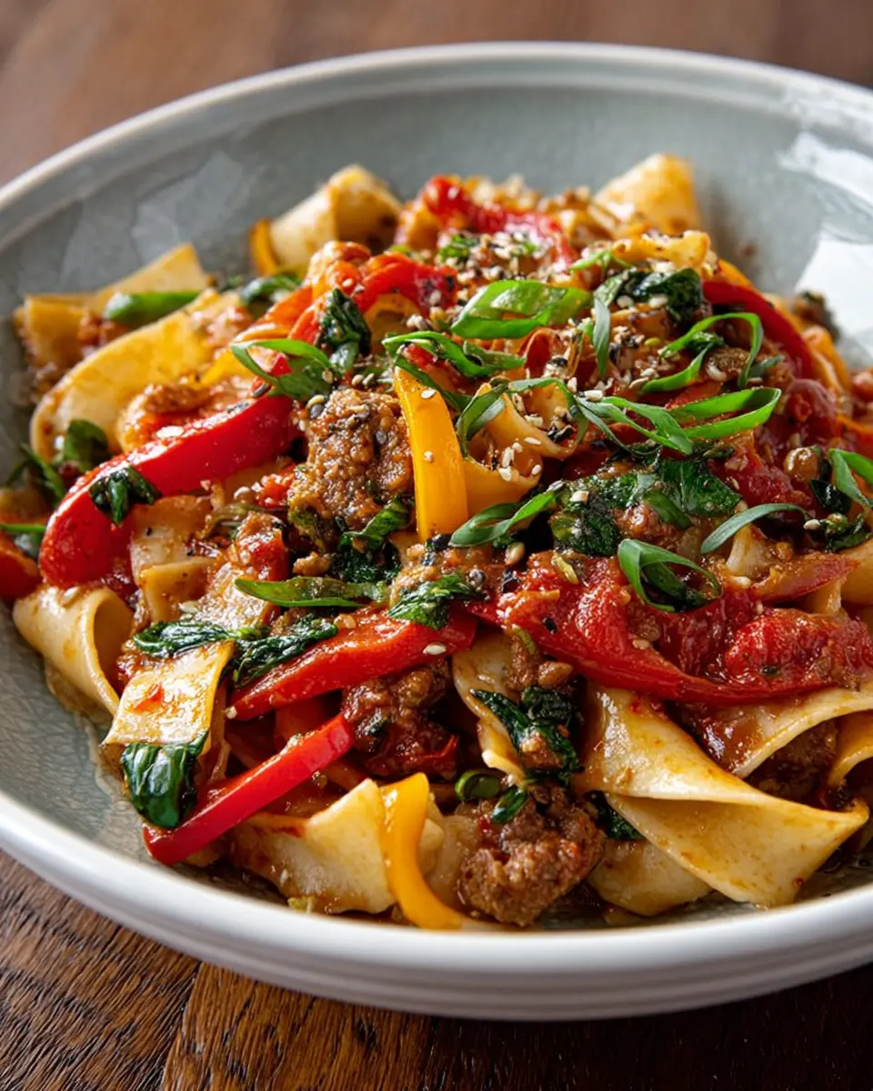 Italian Drunken Noodles are a mouthwatering twist on traditional pasta dishes, blending the best of Italian and Thai cuisine into one scrumptious plate. What makes these noodles irresistible? It’s all about the delightful combination of spicy Italian sausage, colorful bell peppers, and aromatic herbs, all simmered to perfection and tossed with pappardelle—a flat, broad noodle that holds onto flavor like no other.