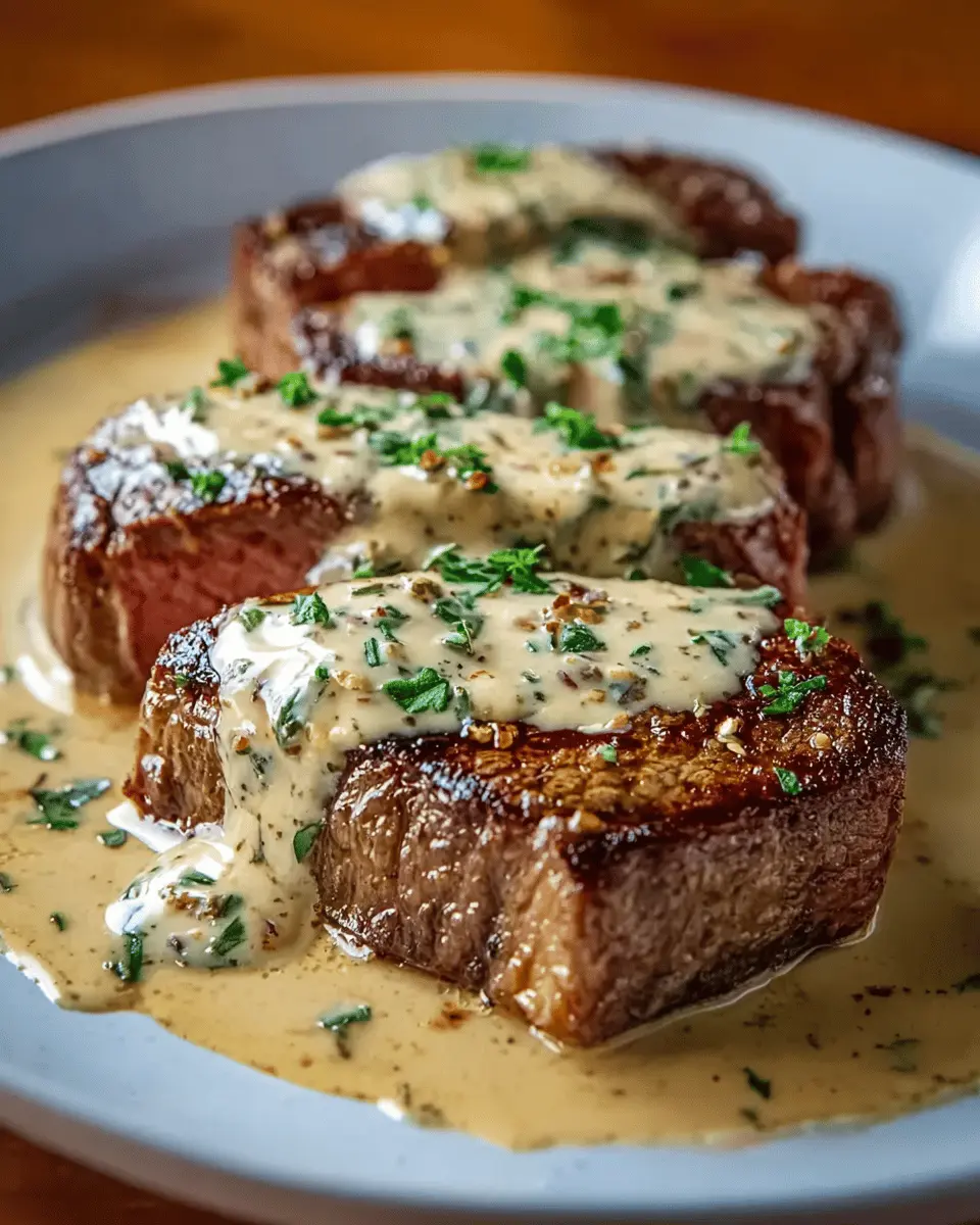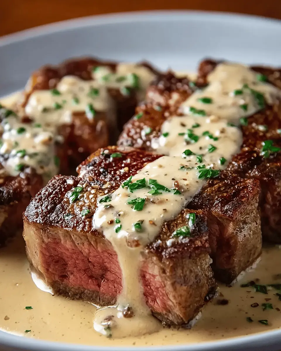 Plate those beautiful steaks, generously draping them with the creamy garlic sauce. Add a sprinkle of freshly chopped parsley for a pop of color. And just like that, your juicy steak with creamy garlic sauce is ready to impress!