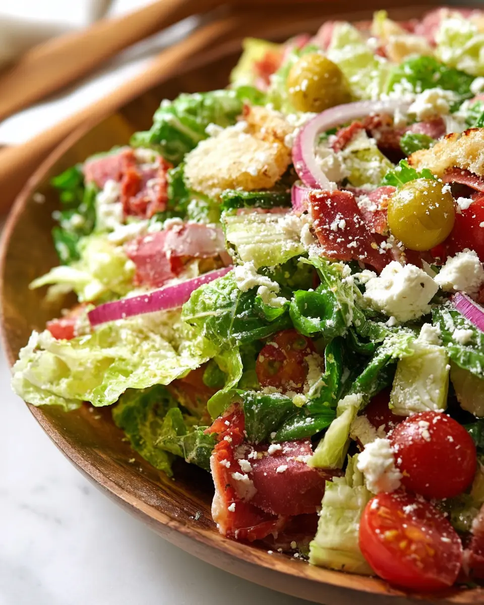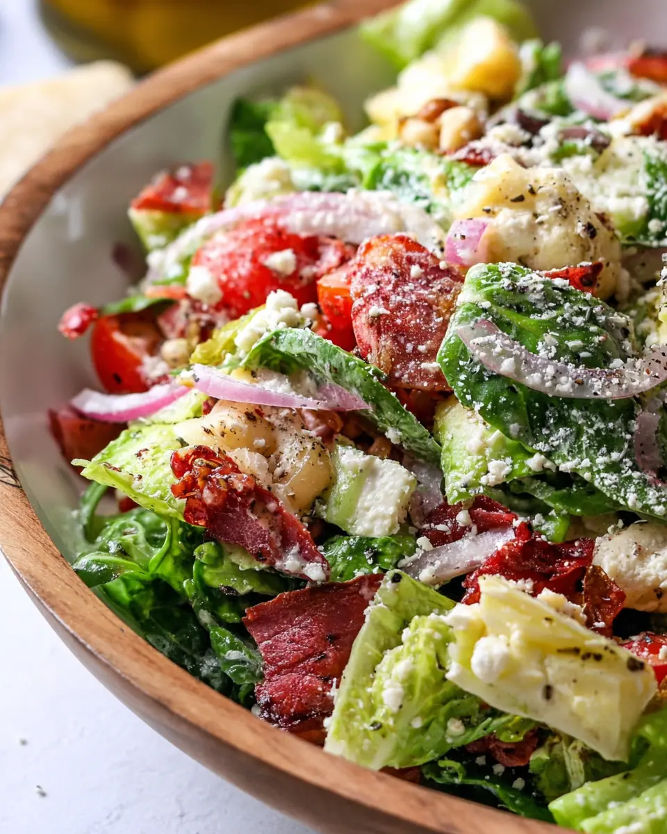 Chopping can be an art, especially for a salad like this. Use a sharp knife to make precise cuts, which will keep your ingredients fresh and appealing. Aim for uniform sizes, about ½ inch, to ensure each bite is balanced. Start with the lettuce, then layer the salami, onions, and mozzarella. For a pro tip, chill your knife and cutting board in the freezer for 10 minutes before you chop—this helps keep the ingredients crisp. Remember, the key to a delicious La Scala Chopped Salad lies in how well you chop those ingredients!
