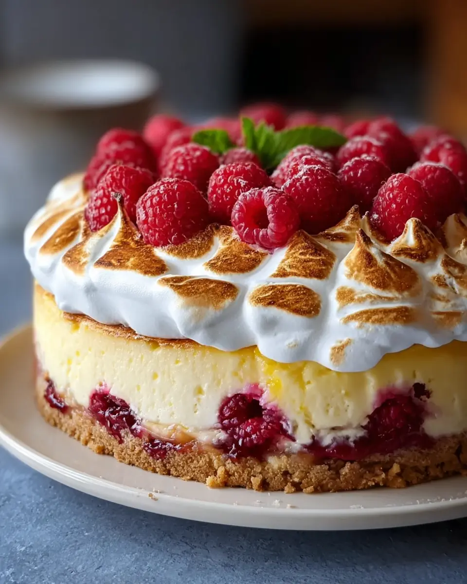 Lemon Raspberry Meringue Cheesecake