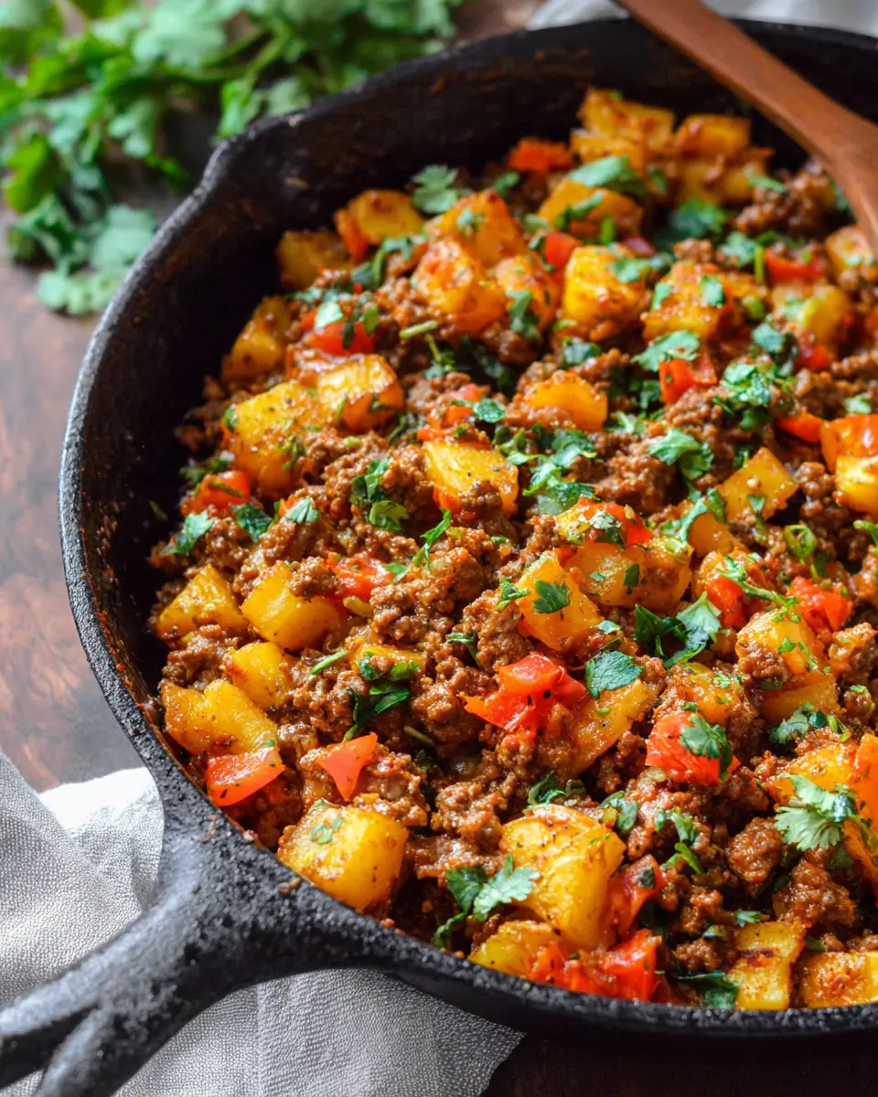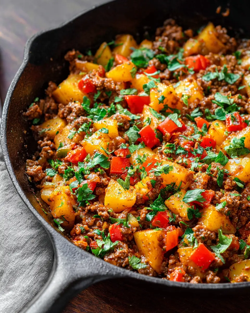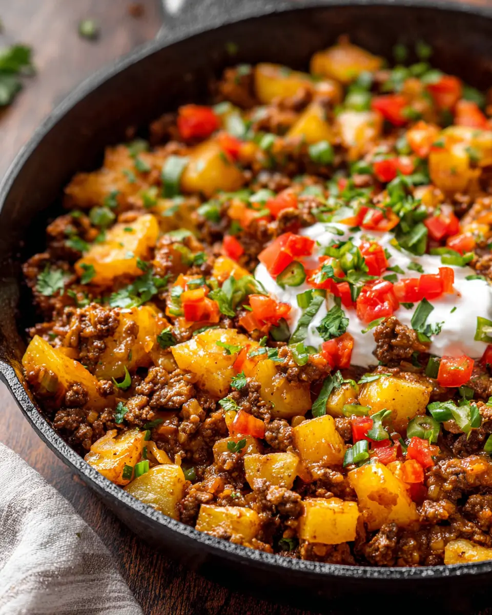 Whether you’re navigating a busy weeknight or looking for a cozy Sunday dinner, this skillet dish promises comfort and convenience. Imagine tender chunks of potatoes perfectly mingling with savory ground beef, zesty green chiles, and a medley of spices that add a kick to your dinner table. It’s the perfect recipe for those who want to indulge in homemade goodness without spending hours in the kitchen.