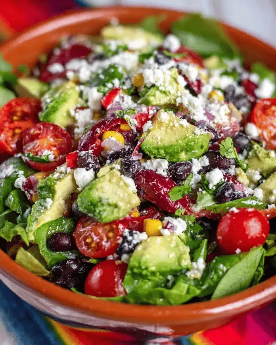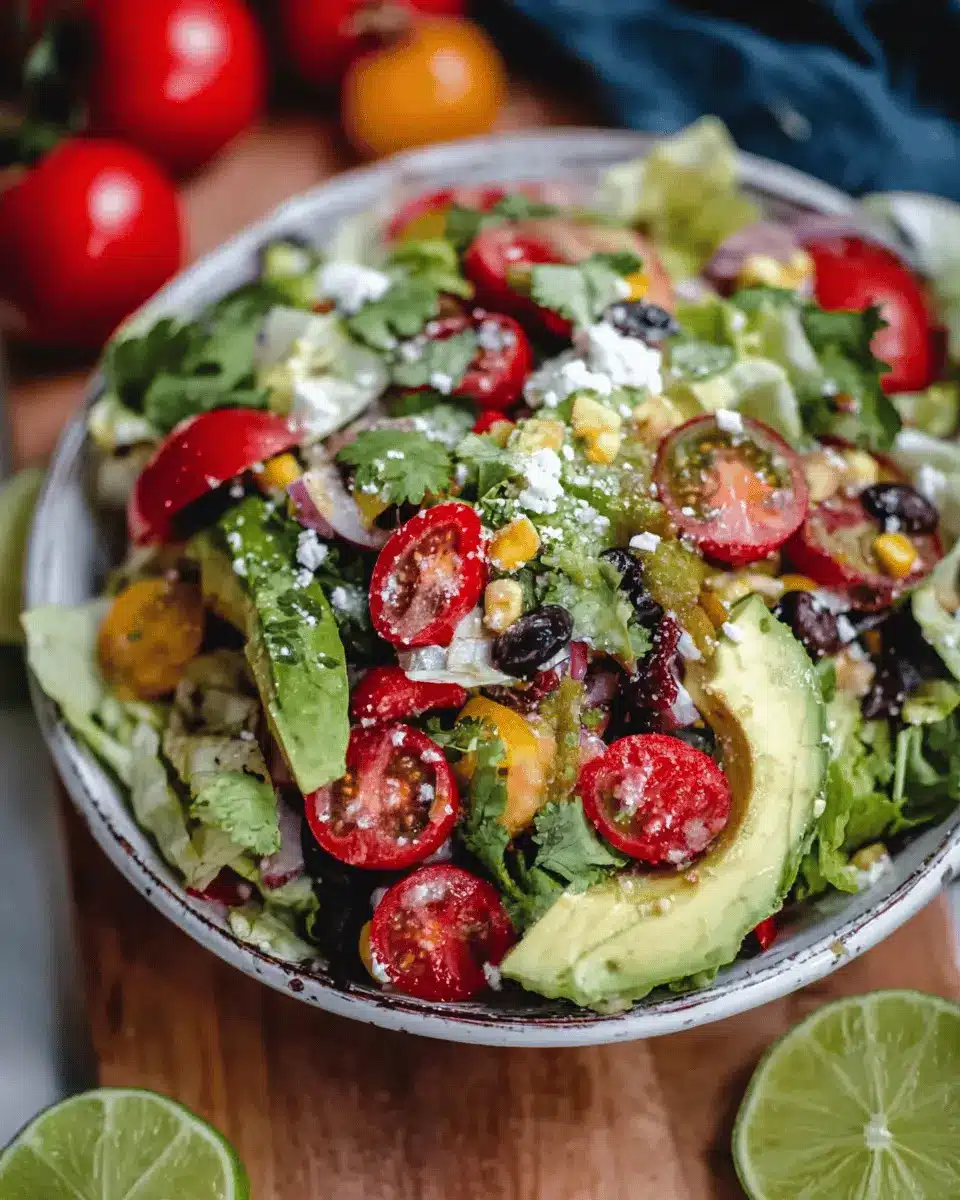 This vibrant Mexican Salad packs a refreshing punch at just 298 calories per serving. It’s an excellent choice for those looking to enjoy a delicious meal without straying from their healthy eating goals.