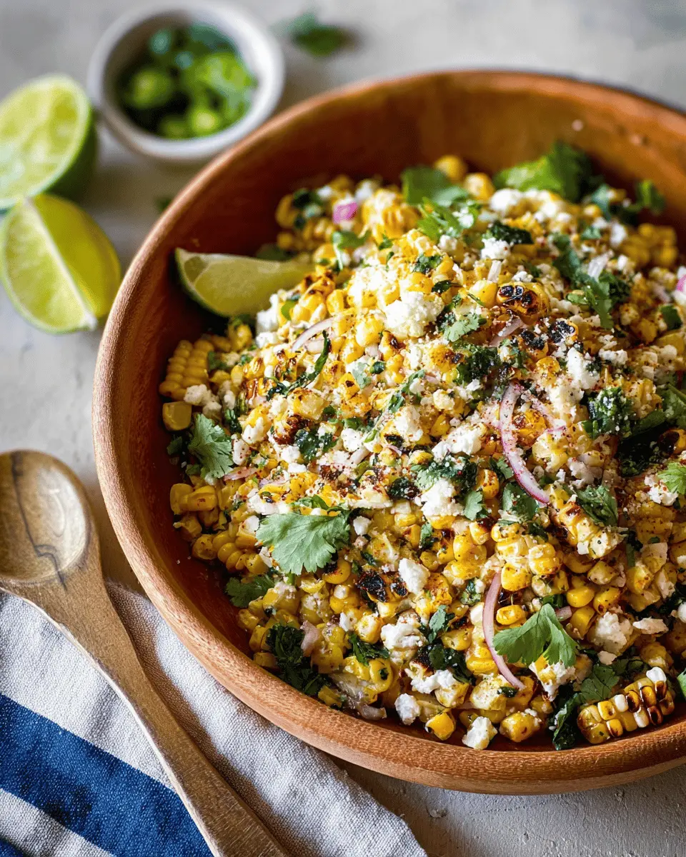 This salad is incredibly versatile, allowing you to serve it alongside grilled meats or as a stand-alone vegetarian dish. The charred sweetness of fresh corn, combined with zesty lime and rich Cotija cheese, makes every bite a delicious experience. Not only is it quick and easy to prepare, but it also celebrates the best seasonal produce during the warmer months, giving you reasons to gather with friends and family.