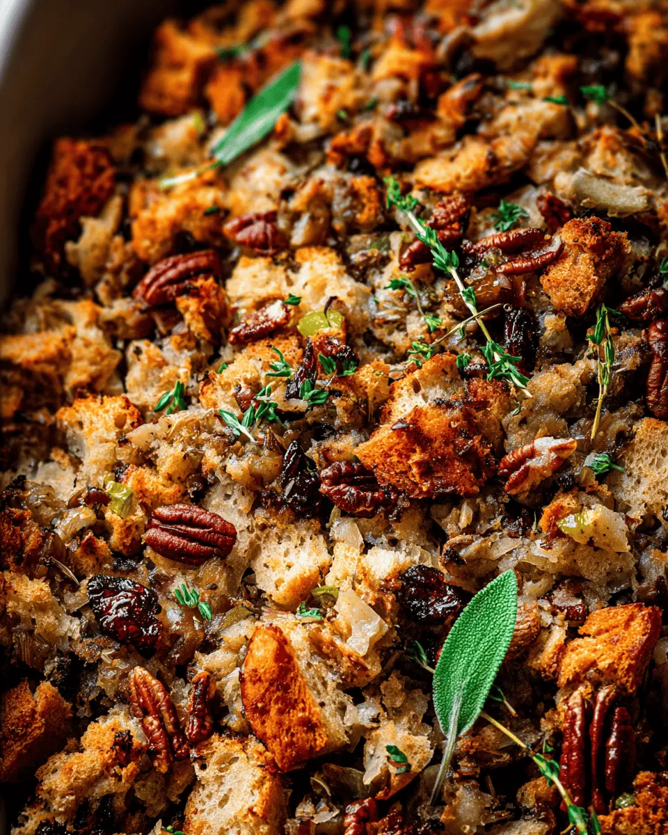 One of the best aspects of this recipe is its versatility. Whether you’re hosting a traditional Thanksgiving feast or simply enjoying a cozy dinner at home, this stuffing can easily be dressed up or down to suit any occasion. The blend of fresh herbs, nutty flavors, and a touch of vegetable stock creates a symphony of taste that pairs beautifully with turkey or even as a hearty vegetarian option.