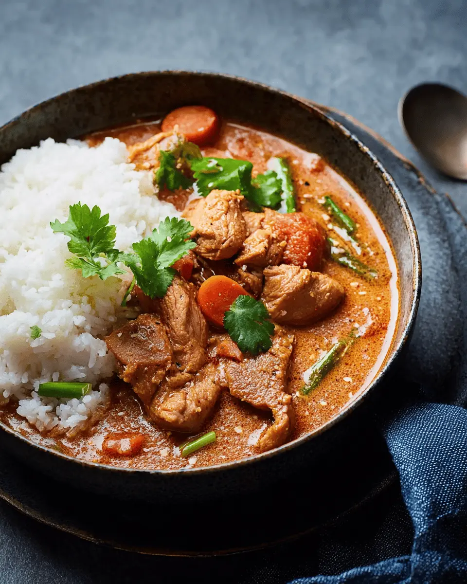 Packed with protein, this stew boasts about 30 grams per serving from the chicken, beef, and peanuts. Perfect for those looking to nourish their bodies with a wholesome, protein-rich meal.