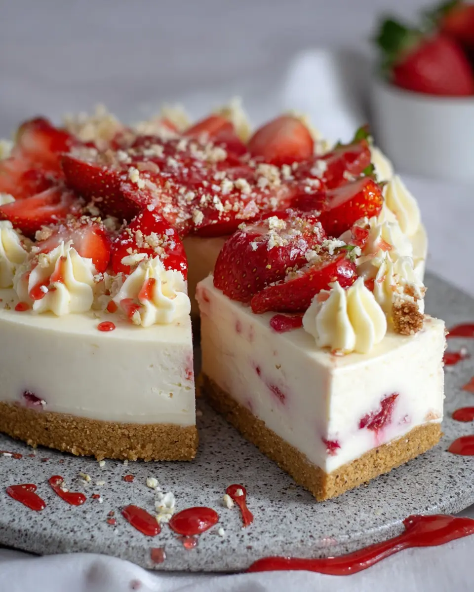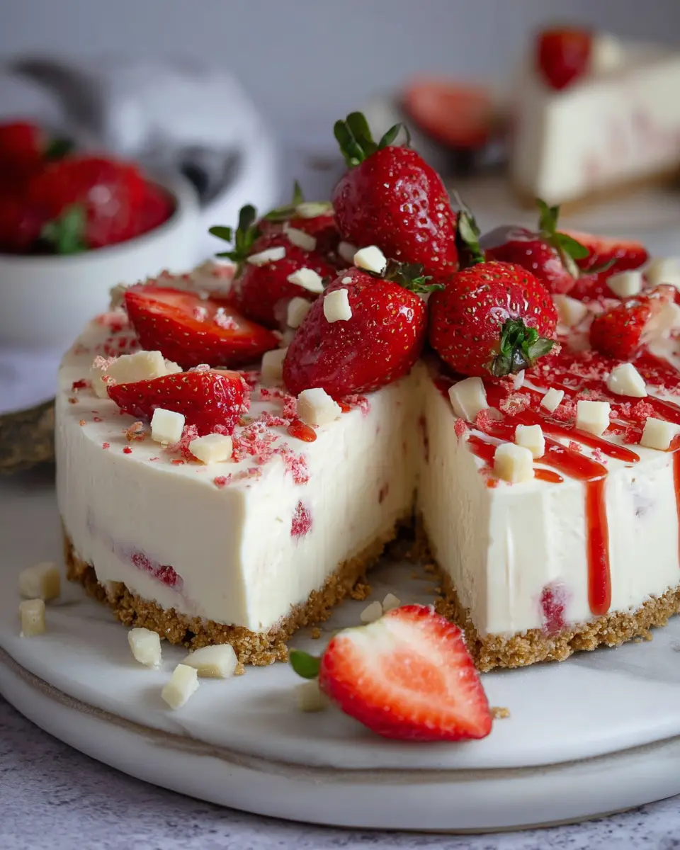 Ready to impress at your next gathering? Dive into the world of no-bake cheesecake with our White Chocolate and Strawberry Cheesecake recipe—you won’t be disappointed!