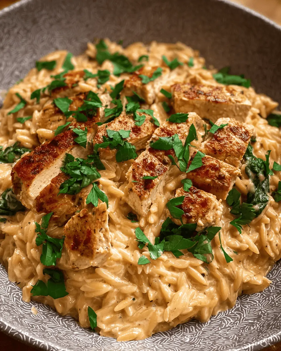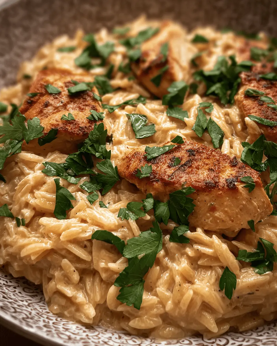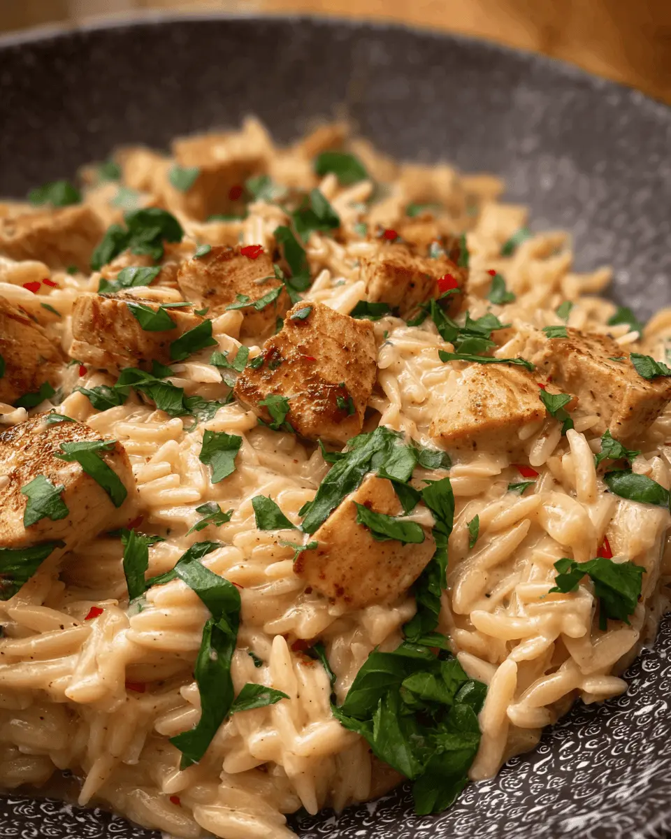 Craving something a little more adventurous? Switch out the chicken for shrimp! Simply sauté peeled and deveined shrimp with the Cajun seasoning until they’re cooked through, then toss them in with the orzo during the cooking phase. The seafood not only adds a delightful twist to the traditional dish, but it also brings a unique flavor profile that pairs beautifully with the creamy Alfredo sauce. Serve with fresh parsley for a burst of color and freshness!