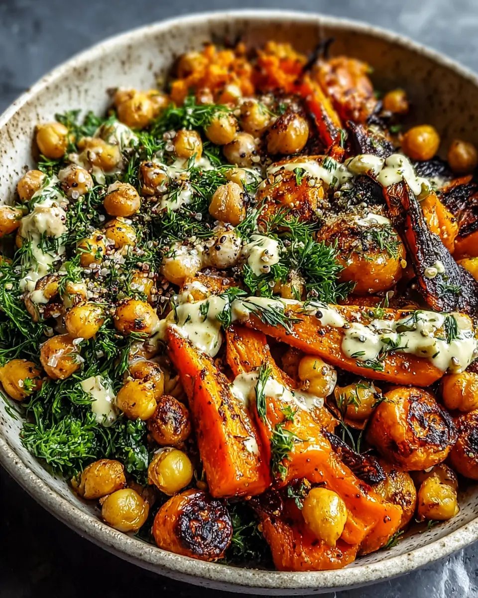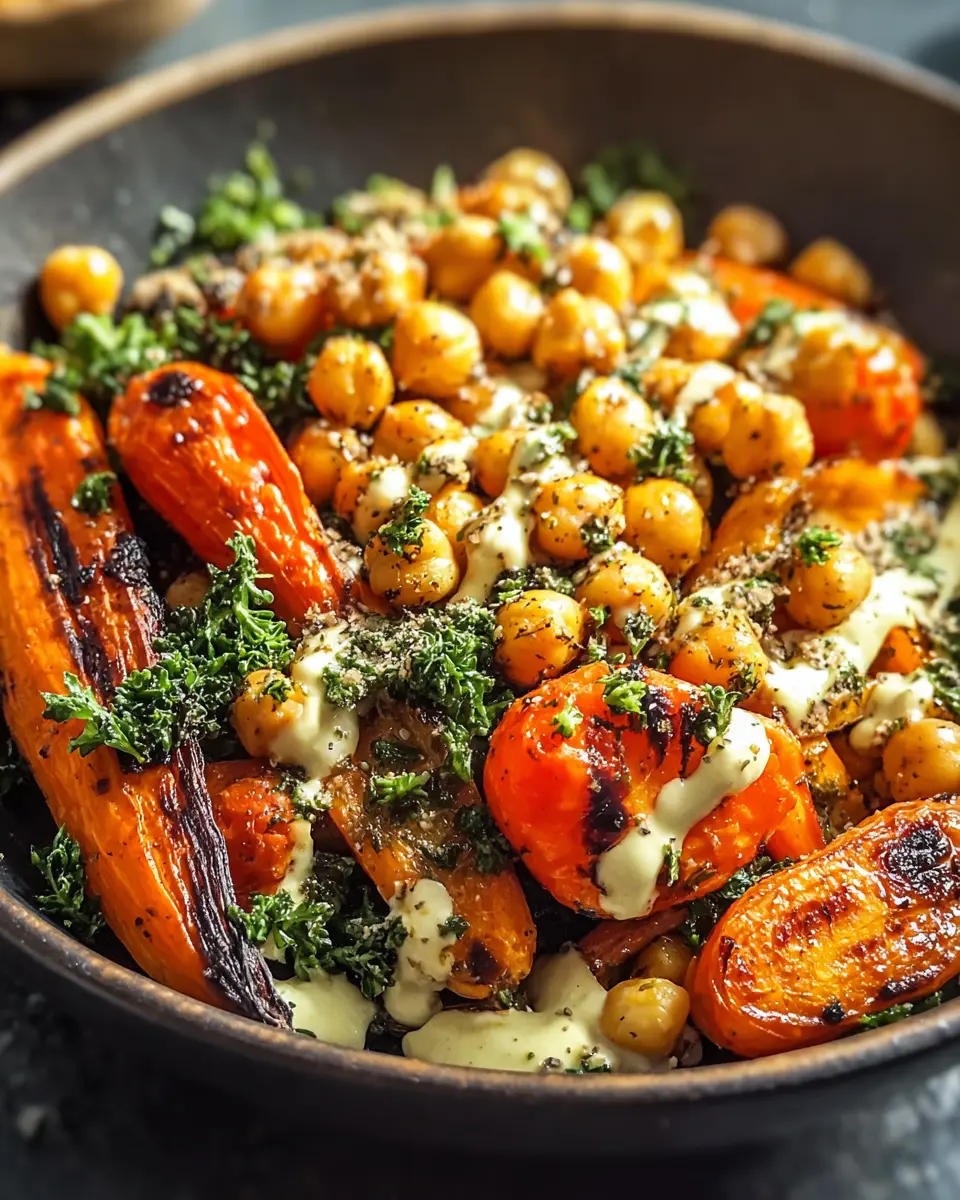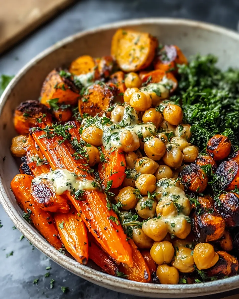 Once your carrots and chickpeas are perfectly roasted, it’s time for the fun part—assembly! Scoop the vibrant mixture into bowls, drizzle generously with your homemade tahini dressing, and enjoy! Feel free to get creative by adding toppings like fresh herbs or avocado slices for that extra flair.