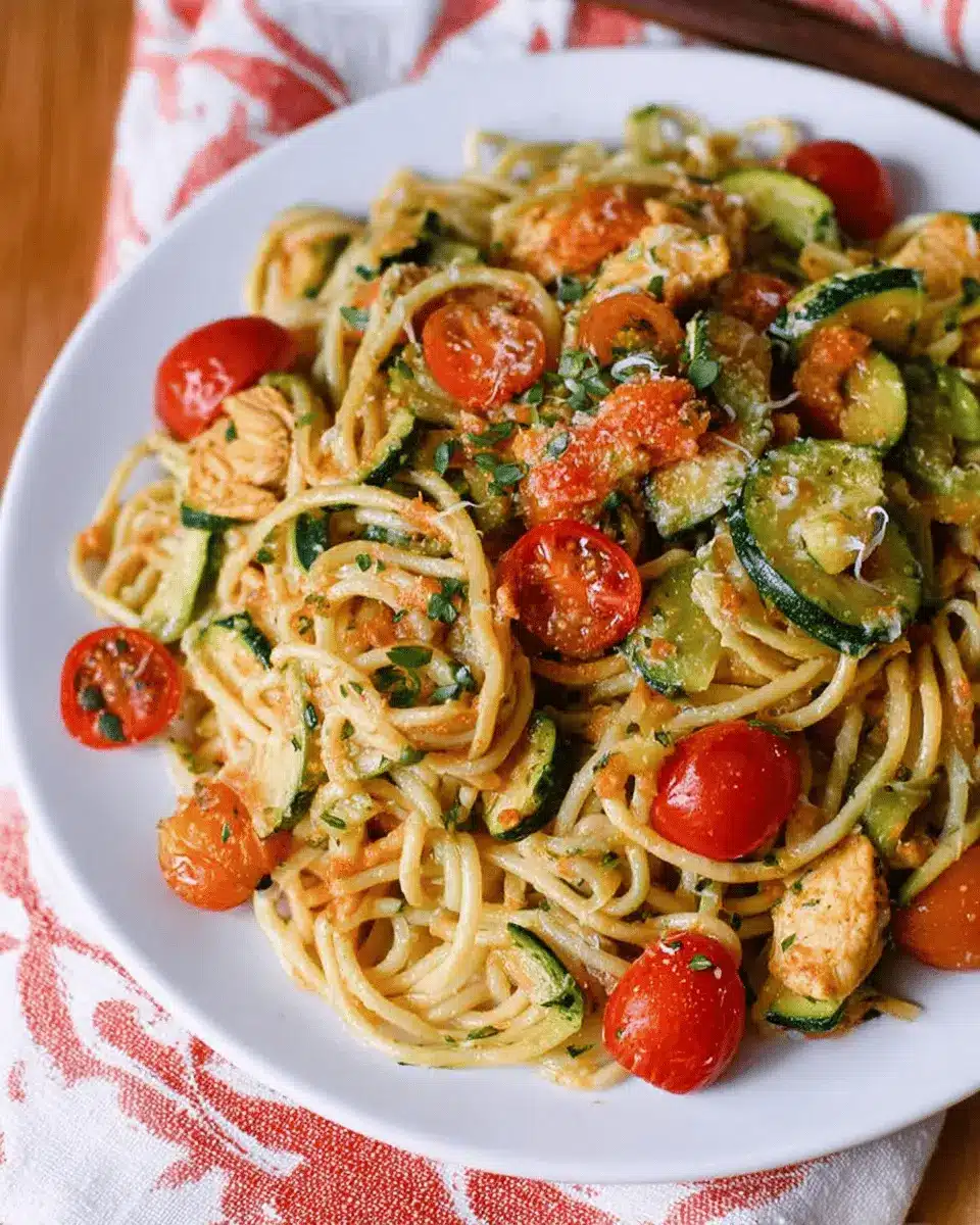 Parmesan Zucchini Tomato Chicken Spaghetti