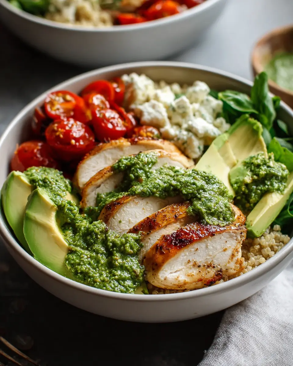For a twist on this classic, consider swapping the chicken for turkey bacon or grilled shrimp. Both options lend a different flavor profile that can take your Pesto Chicken Power Bowls to a new level. If you're in the mood for something more adventurous, how about marinated tofu for a delicious, vegetarian protein? Caramelizing the tofu before adding it to the bowl enhances its texture and imparts a delightful flavor that complements the pesto beautifully.