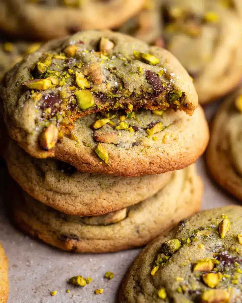 For those who can’t resist the sweet allure of chocolate, dark chocolate chip pistachio cookies are a must-try! Just fold in some dark chocolate chips alongside the pistachios for an extra layer of decadence. The rich chocolate pairs beautifully with the nutty flavor of the pistachios, creating an indulgent treat that’s perfect for any occasion. If you want to switch things up, consider using white chocolate chips for a delightful contrast!