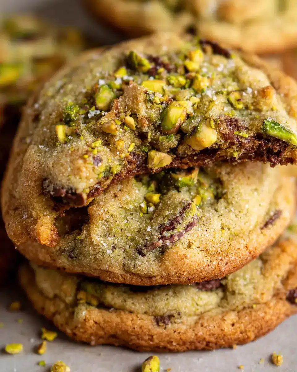 Preheat your oven to 350°F (175°C) and bake for about 10-12 minutes. A lower bake time will yield softer, chewier cookies, while a longer bake will give you crispier ones. When they’re done, let them cool on the baking sheet for a few minutes before transferring them to a wire rack. Feel free to sprinkle extra chocolate, pistachios, and flaky sea salt on top while they’re still warm for that final touch.
