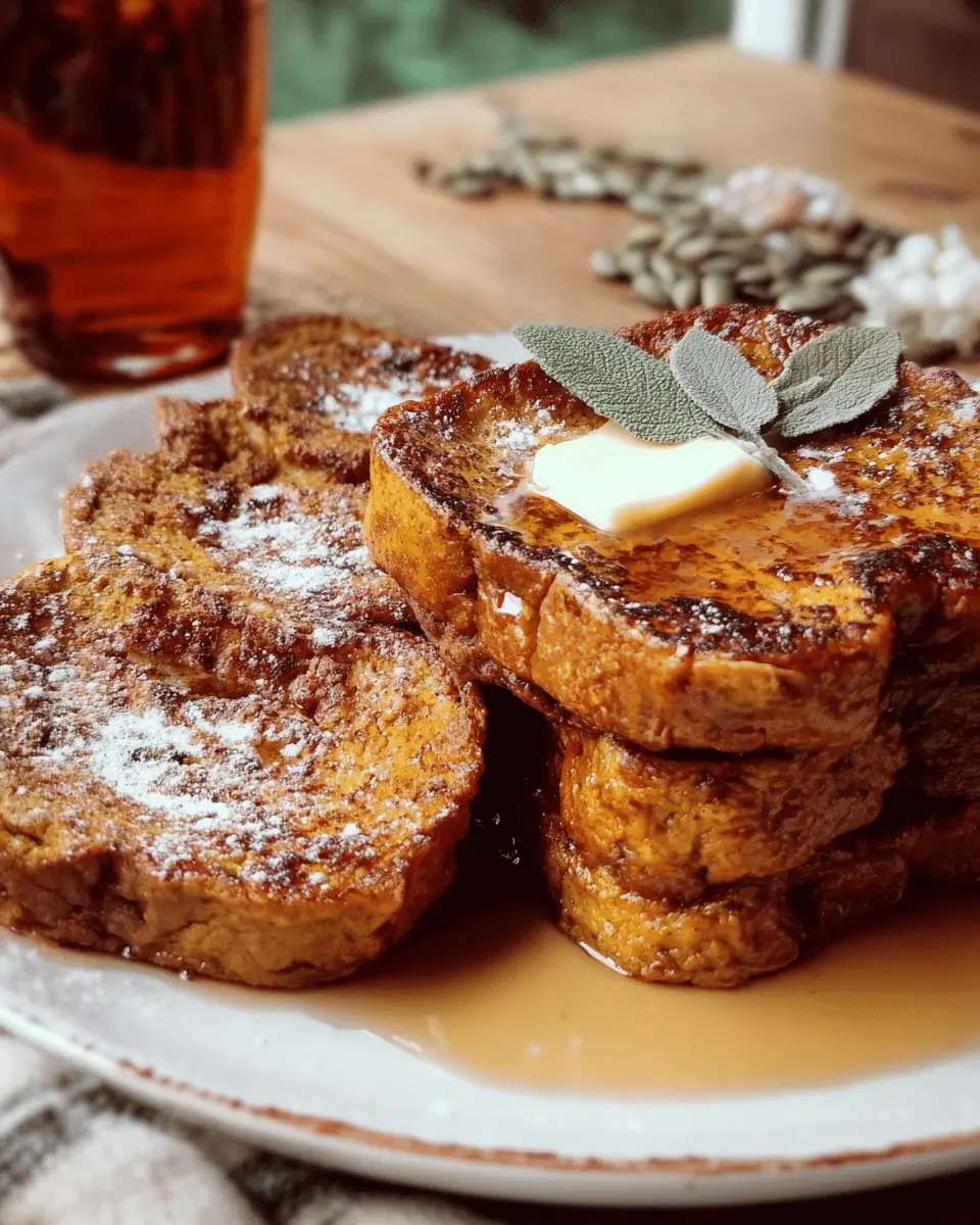 For a unique spin, try a savory option! This Pumpkin French Toast pairs beautifully with crispy turkey bacon. After cooking the French toast, flip it onto a plate and lay down a few strips of turkey bacon. Serve it with avocado slices or a dollop of Greek yogurt for a satisfying breakfast. Adding protein can transform your meal into a well-rounded start to the day. Ready to try something new? Check out these tips on balancing sweet and savory flavors for more inspiration!