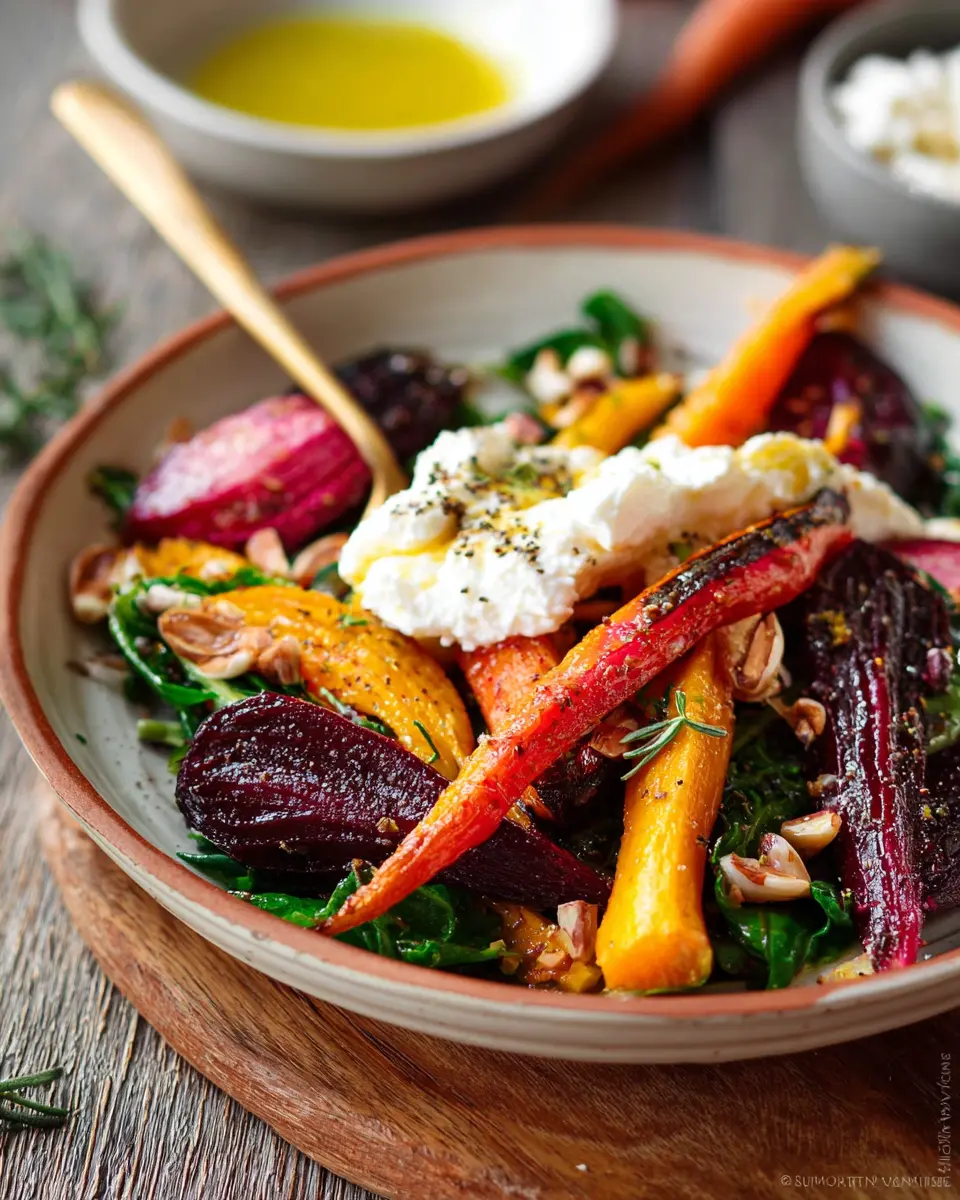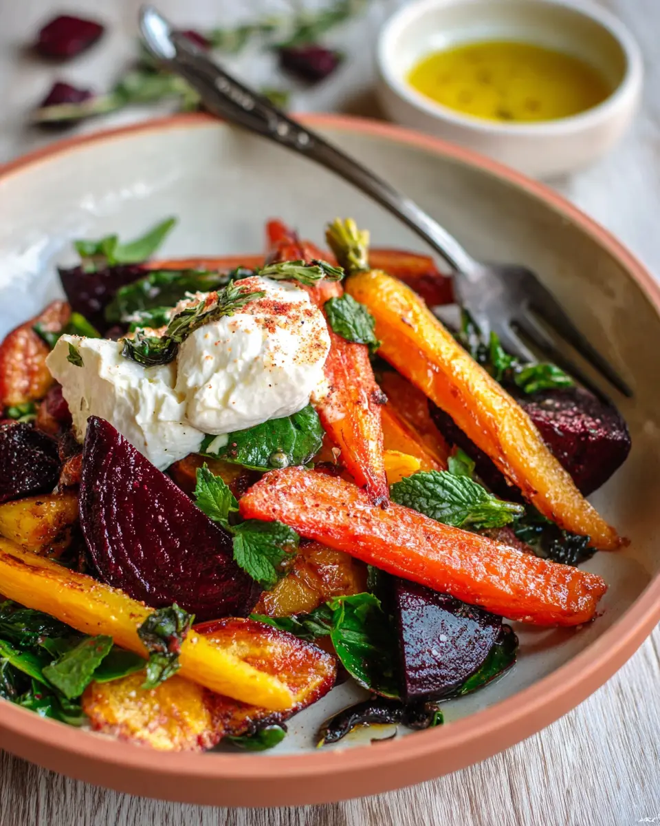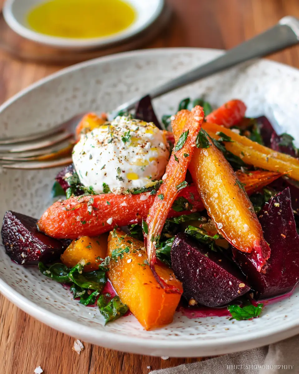 Roasted Beets and Carrots Salad with Burrata