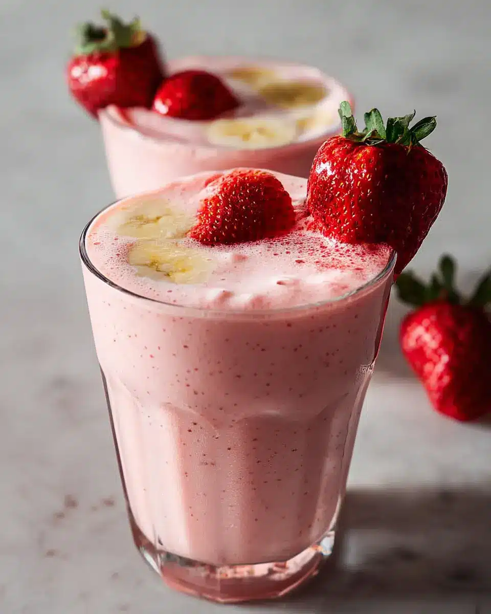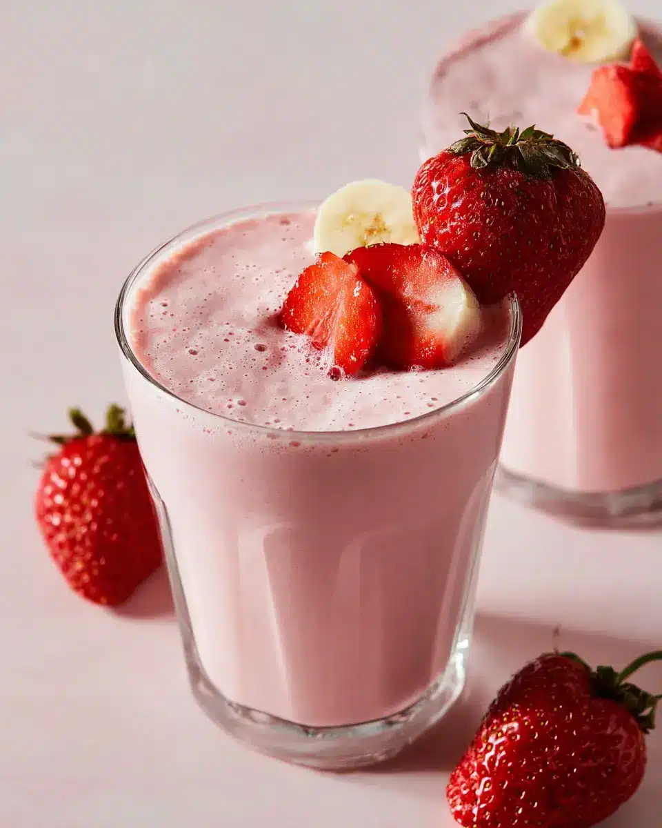 Finally, pour your delightful smoothie into glasses. For an extra touch of finesse, garnish with fresh strawberries on top. Not only does it make for a stunning presentation, but it also adds a pop of freshness that invites everyone to dig in. Serve immediately for the best experience; you’ll be amazed at how refreshing and delicious this Strawberry Banana Smoothie can be. Enjoy the flavors and nourishment with every sip!