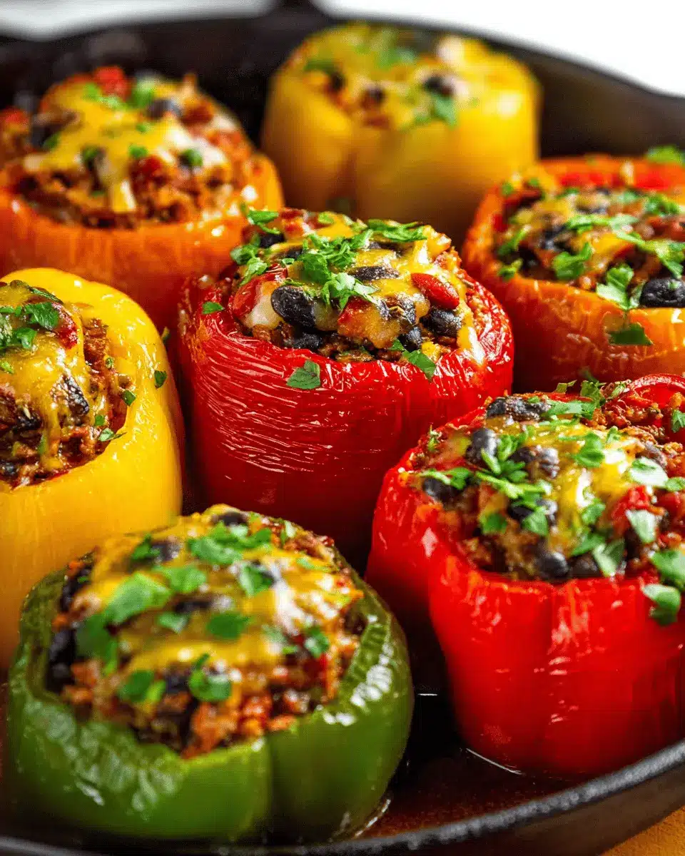 From start to finish, expect to spend about 1 hour and 5 minutes creating these flavorful stuffed peppers. This makes for a perfect weeknight dinner that’s both satisfying and quick!