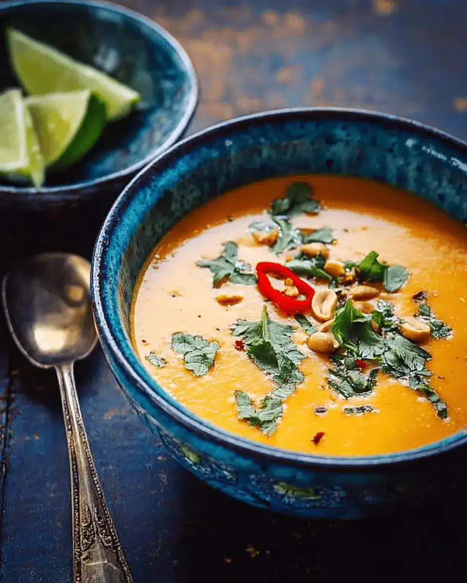 In conclusion, this Thai Coconut-Peanut Sweet Potato Soup is a delightful way to warm your soul and impress your taste buds. Rich in flavor and packed with nutrients, it’s perfect for cozy evenings or casual gatherings. Don’t forget to garnish with cilantro and lime for that extra zing!
