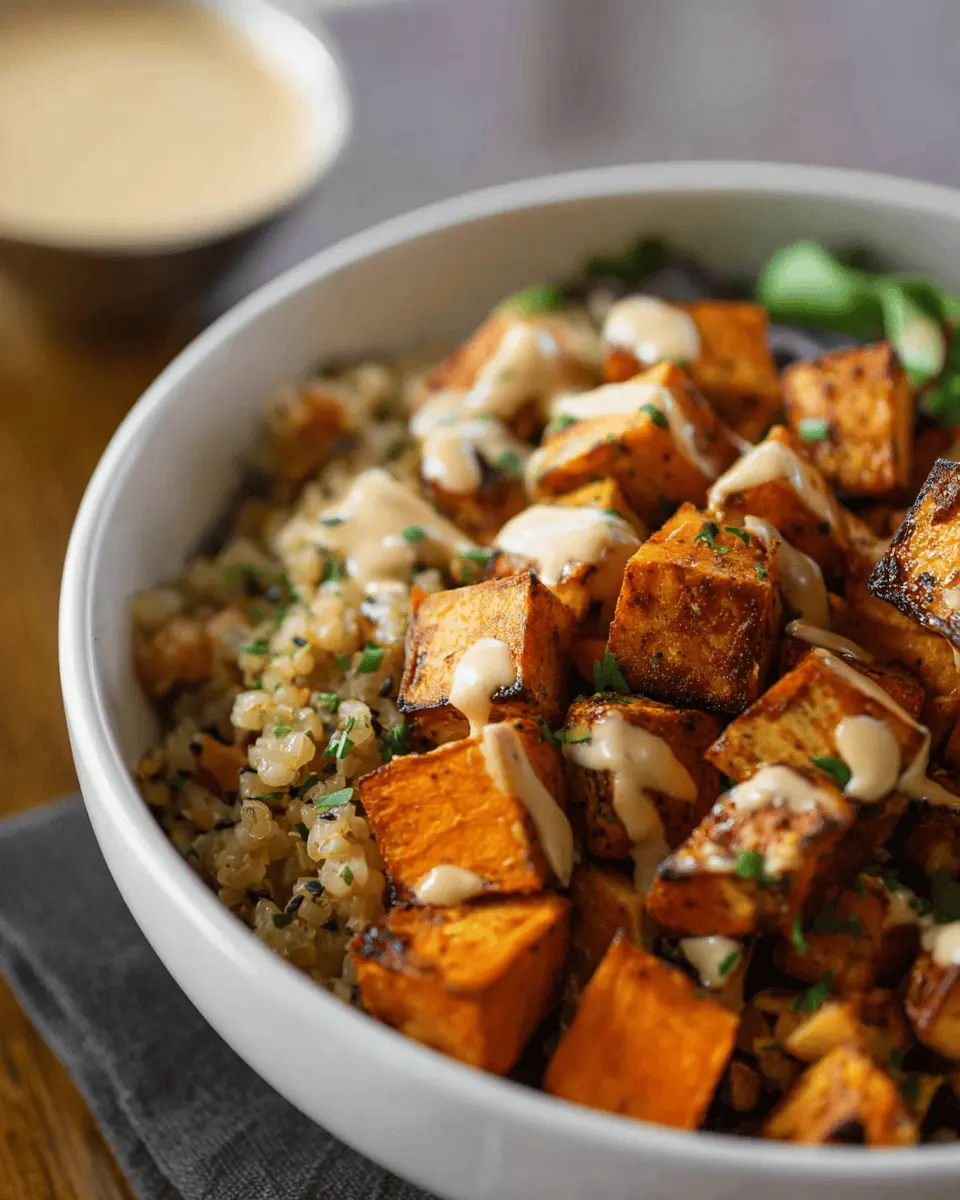 In conclusion, the Tofu Sweet Potato Bowl with Tahini Sauce is a delightful blend of flavors and nutrients, making it a perfect choice for a cozy meal. Its versatility and ease of preparation ensure it fits seamlessly into any weeknight menu. Enjoy the warmth!