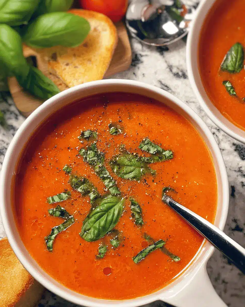 Tomato Basil Soup is a classic comfort dish that pairs beautifully with several accompaniments! For a truly delightful experience, try the following serving suggestions: