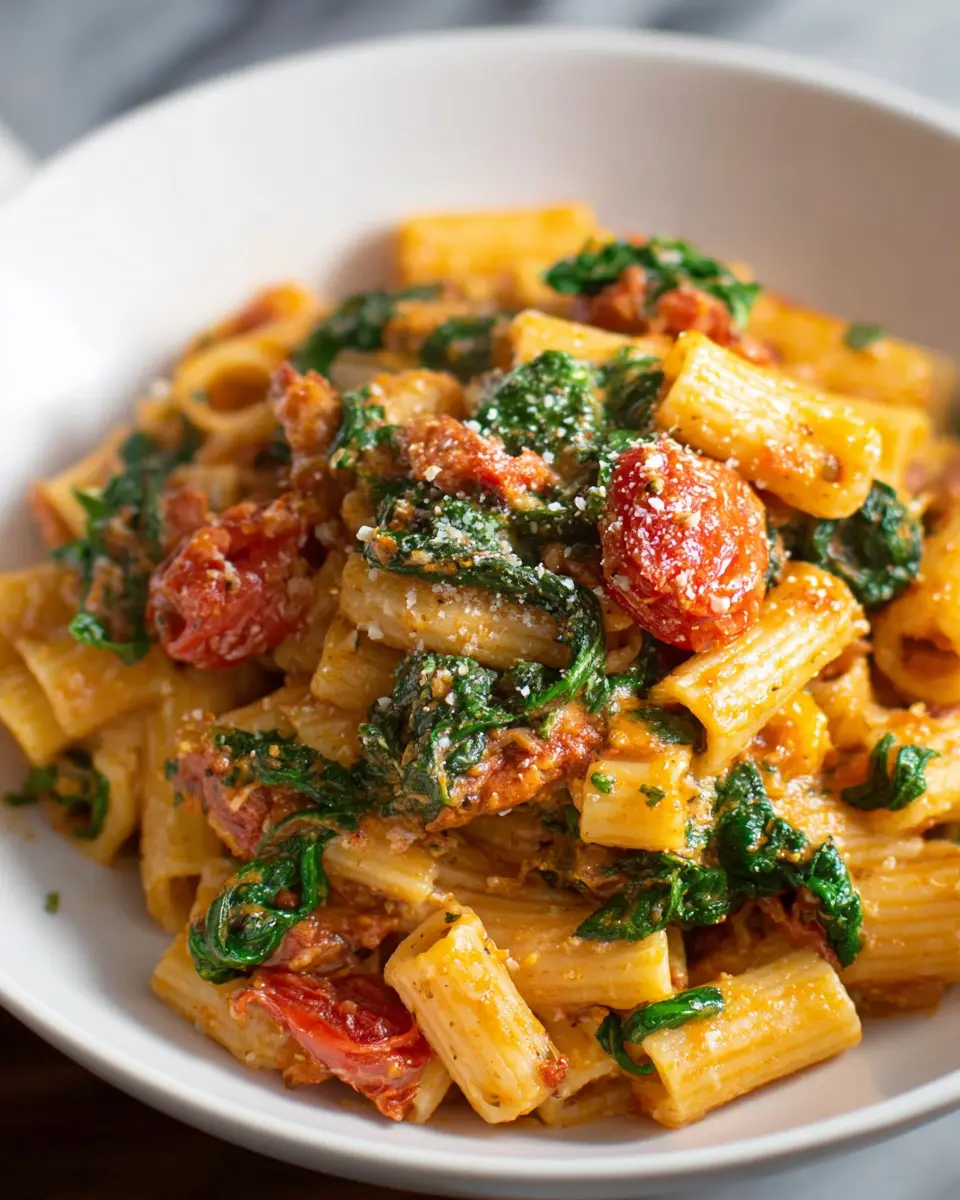 In short, Tomato Spinach Pasta is a delicious, quick, and satisfying choice for any weeknight dinner. Enjoy a hearty meal without all the fuss!