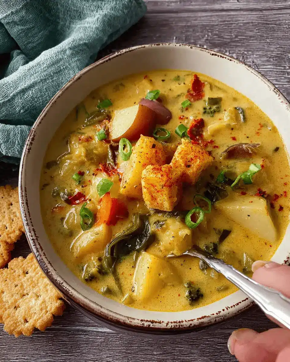 For a heartier meal, try a loaded vegan potato chowder that brings all the comfort without sacrificing flavor. Add ingredients like vegan cheese, vegan sour cream, and crispy plant-based turkey bacon to create a bowl that satisfies even the most adventurous eaters. You can even top it with chives and a sprinkle of paprika for added pops of flavor!