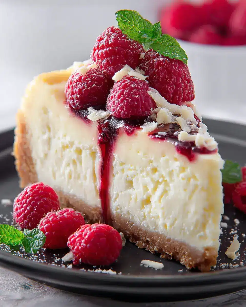 Why is this cheesecake a must-try for young professionals? First, it’s a showstopper that’s surprisingly simple to make! With just a few basic ingredients and a moderate amount of prep time, you can impress your colleagues or devour it solo while binge-watching your favorite series. Plus, the combination of sweet white chocolate and tangy raspberries not only pleases your palate but also adds a pop of color to your gatherings.